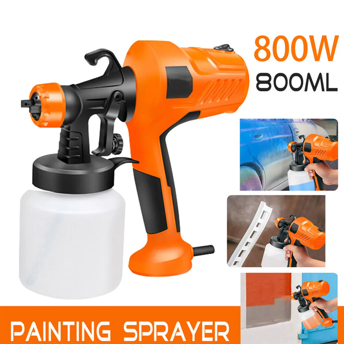Посылка включает в себя:1 x Электрический распылитель краскиОсобенности:-Поставляется в комплекте с бабочкой объемом 800 мл.-Делает большие картины проще и быстрее.-Регулируемый поток сопла и скорость скручивания.-Встроенный полностью медный мощный двигатель.-Широкое применение. Идеально подходит для внутренних и наружных стен, дверей, окон, заборов и ворот.-Можно использовать с акриловыми или эмалевыми красками, лаками и красками для загара.Спецификация:1. Название: 800 Вт Краскораспылитель2. Модель: E137763. Материал: металл + пластик4. Цвет: оранжевый/белый (случайный цвет)5. Емкость горшка: 800 мл6. Пиковая мощность: 800 Вт Номинальная мощность: 500 Вт7. Напряжение: 220 В 50 Гц8. Макс. Поток: 480 мл/мин.9. Макс. Вязкость: 40 DIN-s10. Насадка Диаметр: 2,5 мм11. Размер: 250x150x130ммПримечание1. Перед использованием проверьте вязкость рисунка.2. Обратите внимание на использование и размещение. Не используйте вертикально.3. Ременбер для очистки после использования.4. Мы отправим вам подходящий адаптер в соответствии с вашим местоположением.5. Допускается небольшая погрешность из-за ручного измерения.