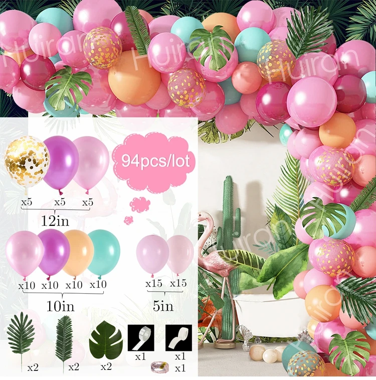 Гирлянда из тропических Гавайских воздушных шаров с розовым фламинго, украшение для дня рождения, лето арочный комплект, гавайская цепь, воздушный шар "Конфетти"