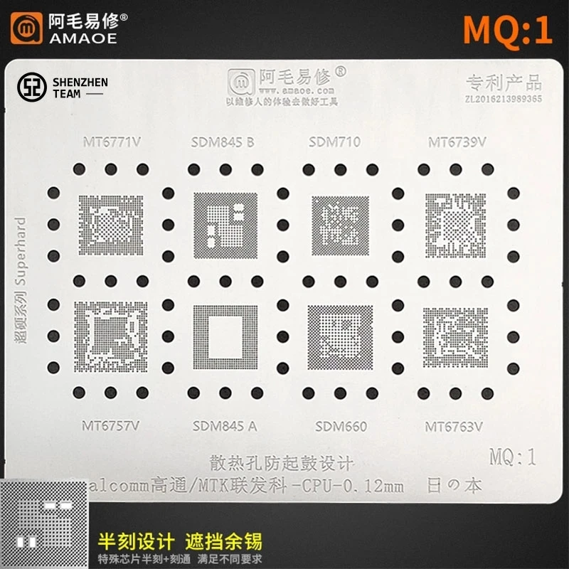Трафарет AMAOE MQ:1 MQ1 для Qualcomm MTK MT6771V SDM845 B SDM710 MT6739V MT6575V SDM845 A SDM660 MT6763V трафарет для реболлинга процессора