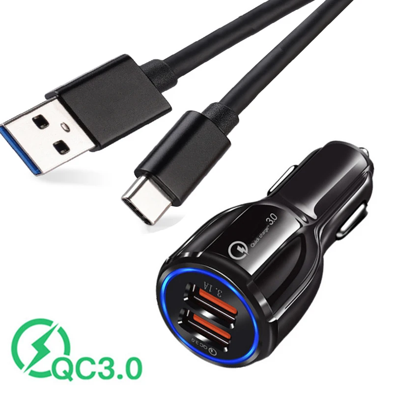 Автомобильное зарядное устройство QC 3,0, USB Type C, кабель для бы...