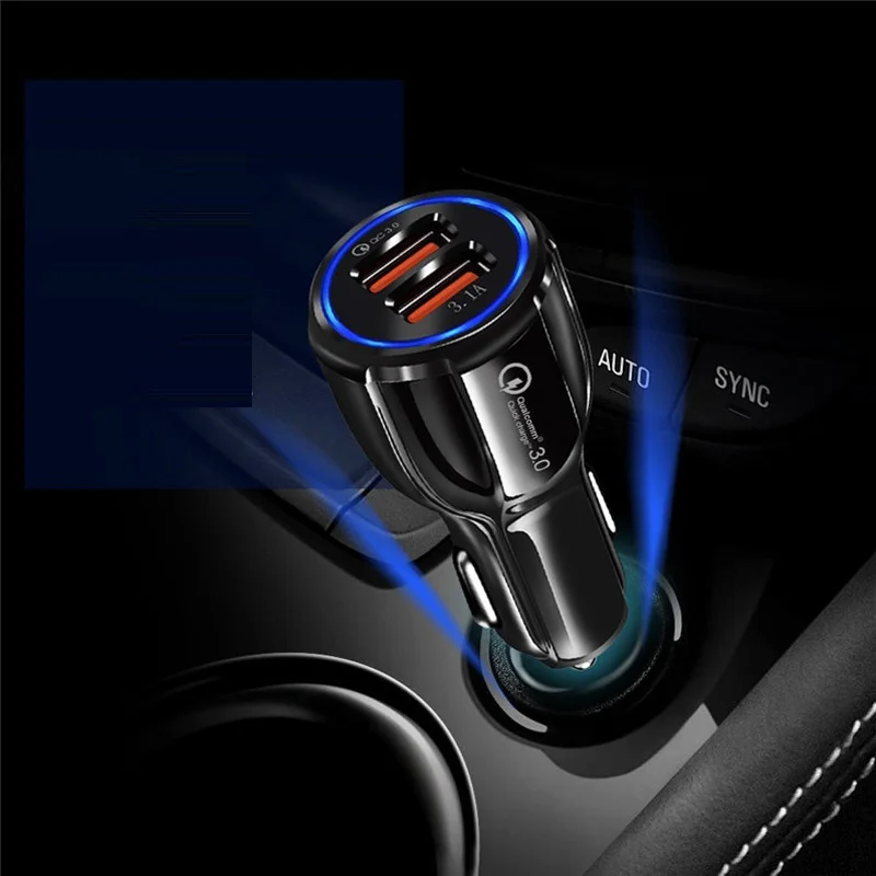 Автомобильное зарядное устройство с двумя USB-портами, QC 3,0