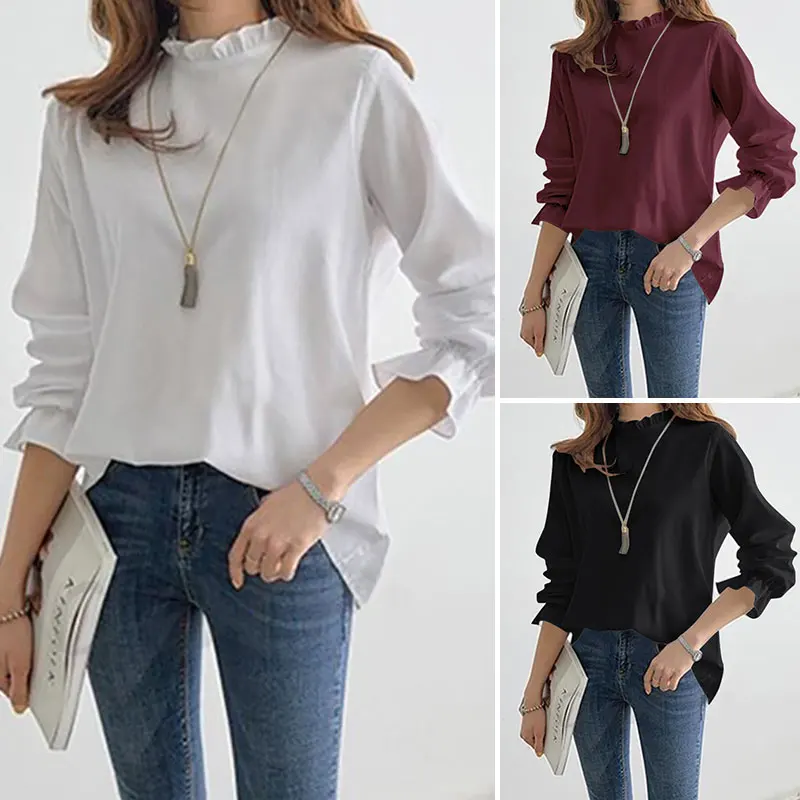 Посылка входит: 1 блузкаМатериал: 100% хлопокЦвета: черный, белый, винно-красныйРазмер: S,M,L,XL,2XL,Длина рукава: полный рукавВырез: круглый вырезУзор: однотонныйПряжка-цепочка: пуговицы сзадиТолщина: тонкаяУкрашение: оборкиОсобенности: расклешенный рукав, эластичные манжетыСтиль: Досуг, богемный, ретро, Европа, универсальныйСезон: весна, лето, осень, зимаПовод: семья вечерние, пляж, свадьба, праздник