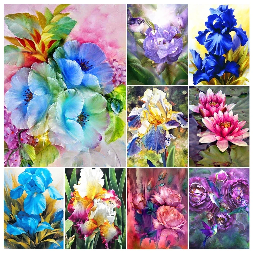 Алмазная картина, алмазная вышивка, цветные цветы, сделай сам, полн...