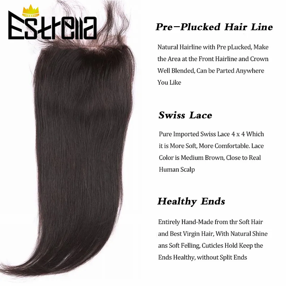 Малайзия прямые кружевные фронтальные волосы Remy 100% человеческие волосы свободная часть швейцарская кружевная застежка фронтальный естественный цвет Estrella