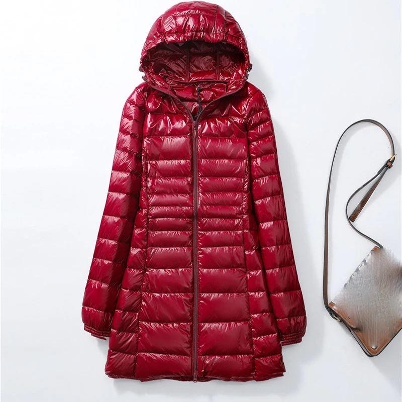 Размера плюс длинный пуховик женский зимний ультра легкий пуховик ж...