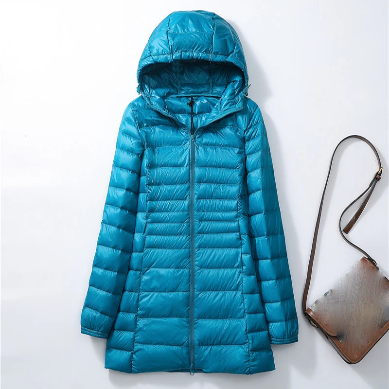 Женский длинный пуховик, осенне-зимний тонкий пуховик с утиным пухо...