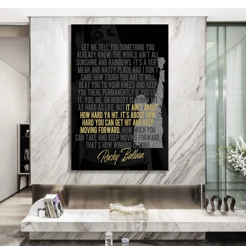 Мотивационные постеры и принты с цитатами черно-белые боксерские Рокки, Картина на холсте, Современное украшение для гостиной, домашний декор