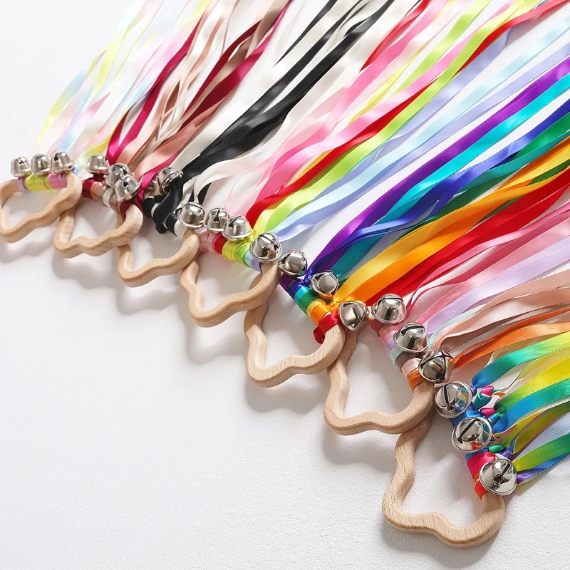 Кольцо из натуральной радужной древесины с лентой, игрушки Вальдорф, Детские Прорезыватели, игрушки Монтессори, развивающие игрушки, сенсорная игрушка для подарка