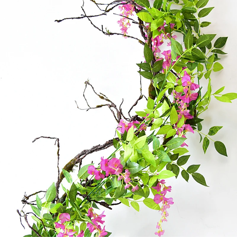 180 см яркие Вистерия искусственная цветы венок из виноградных лист...