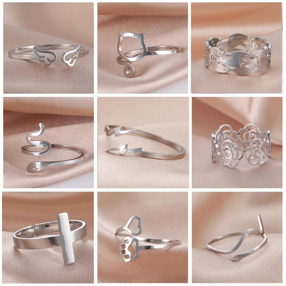 Skyrim регулируемое кольцо для женщин из нержавеющей стали Кошка Змея Крест собака Лапа молния Крыло ангела пара кольцо 2022 модные ювелирные изделия