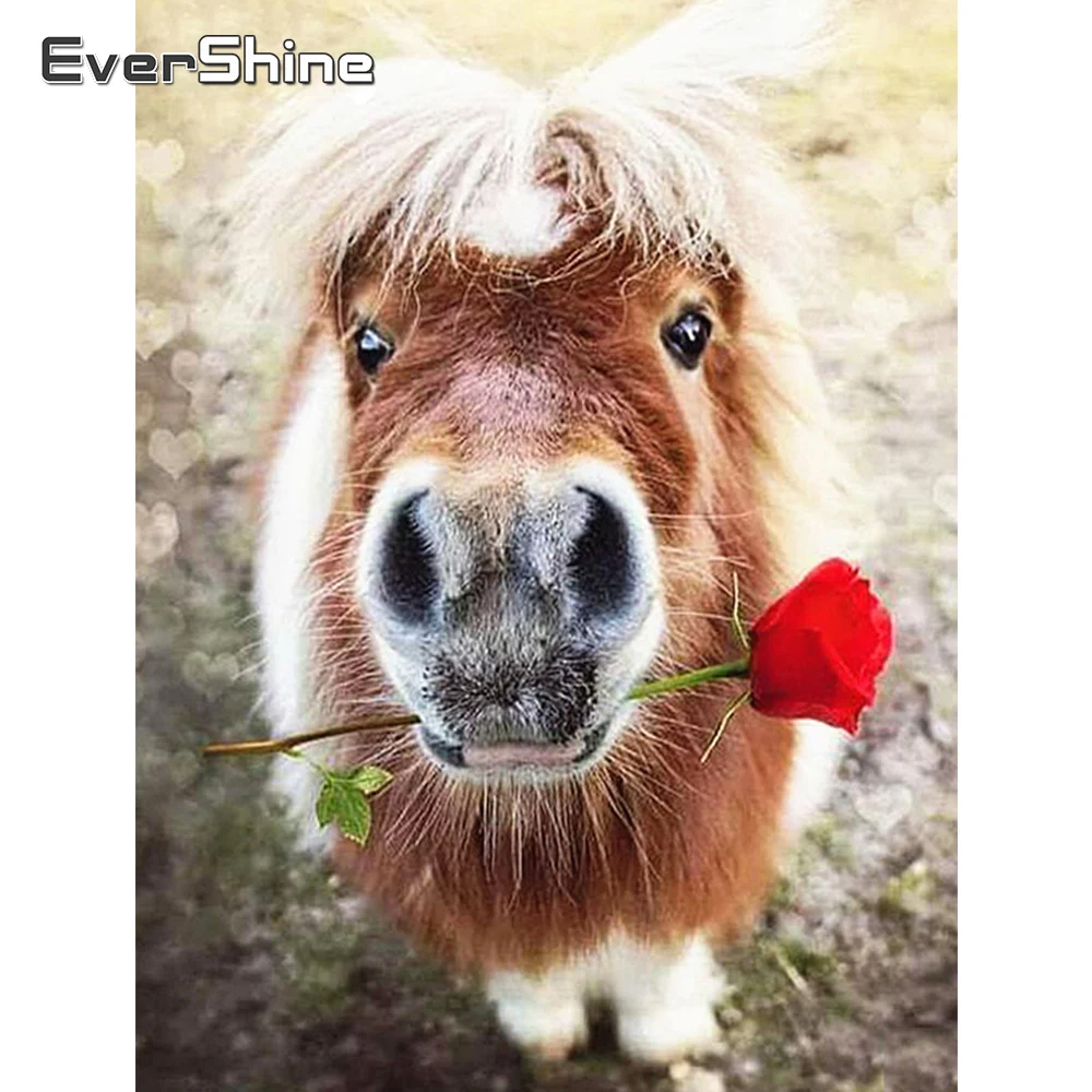 EverShine Алмазная вышивка полная дрель квадратная лошадь 5D DIY Алмазная картина животное картина Стразы мозаика домашний декор