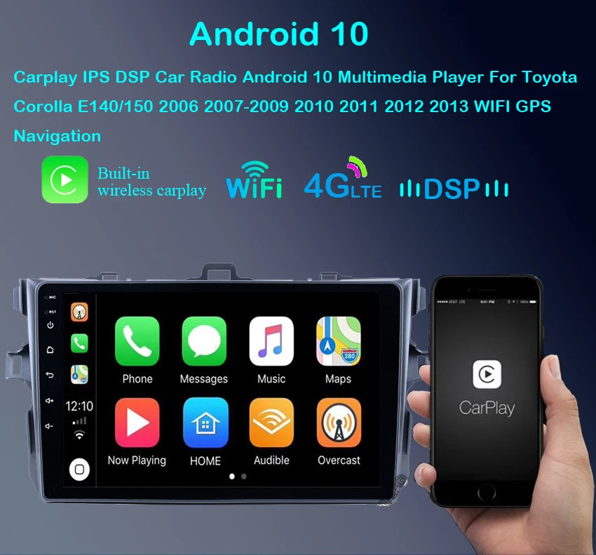 Автомобильный радиоприемник Android 11, мультимедийный плеер для Toyota Corolla E140150, 2006, 2007-2009, 2010, 2011, 2012, 2013, Wi-Fi, GPS-навигация