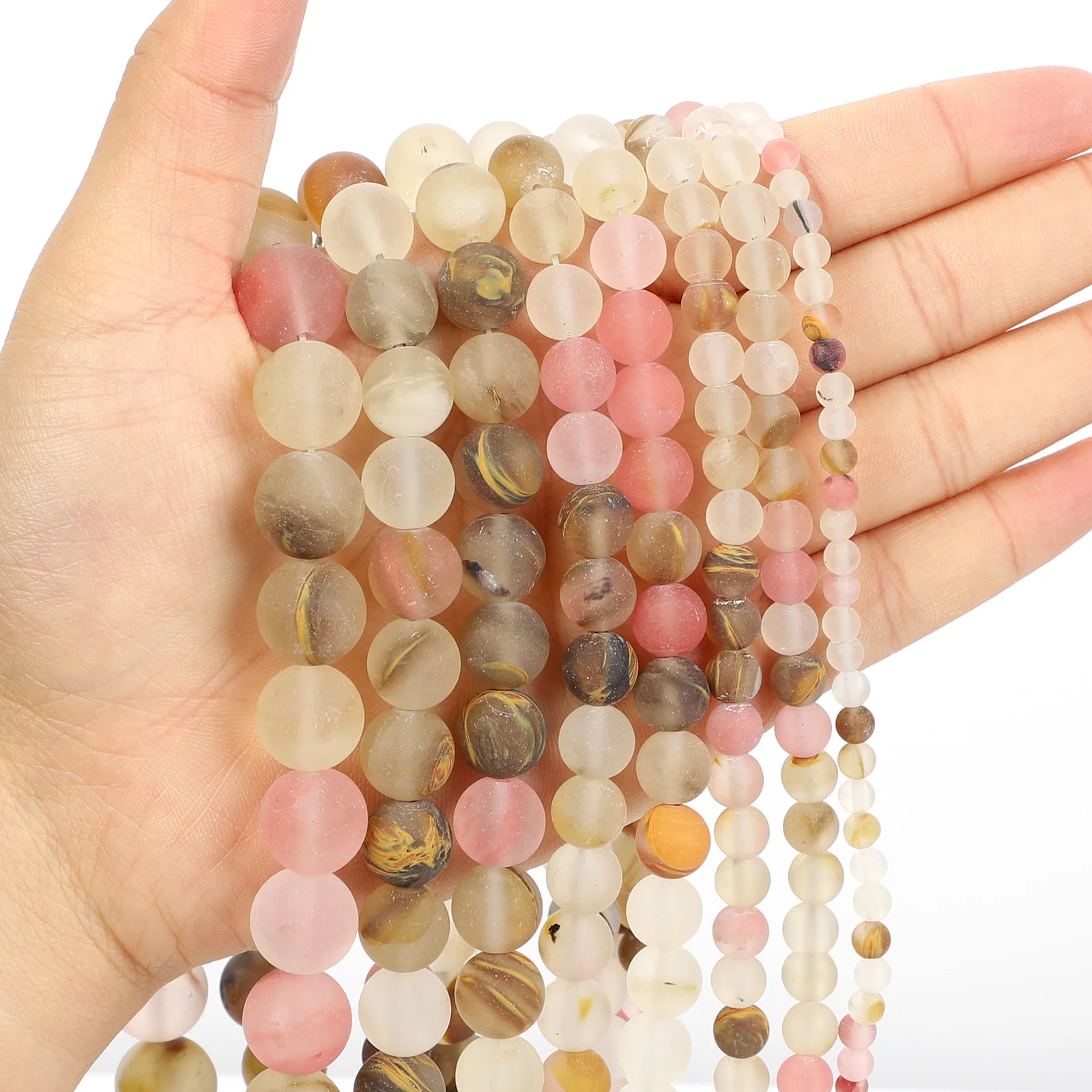 Матовый халцедон для изготовления ювелирных изделий, Круглый бисер из натурального камня, свободный космический, для самостоятельного изготовления браслетов, 4681012 мм