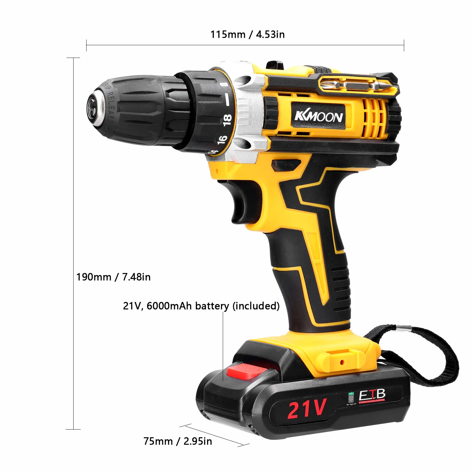 Электродрель аккумуляторная, 21 в, 2 скорости, 18 передач крутящего момента, Аккумулятор 6000 мА ч