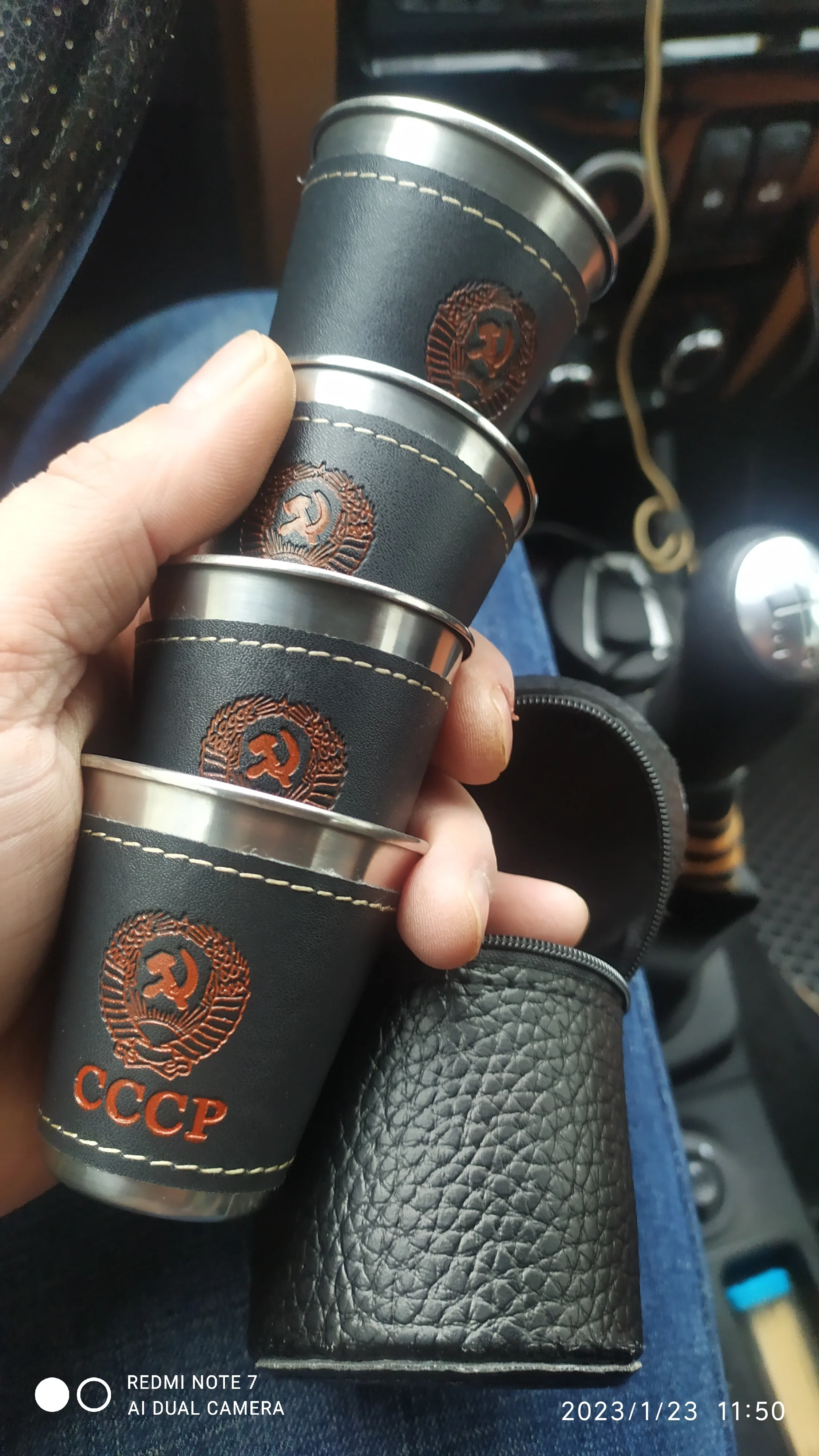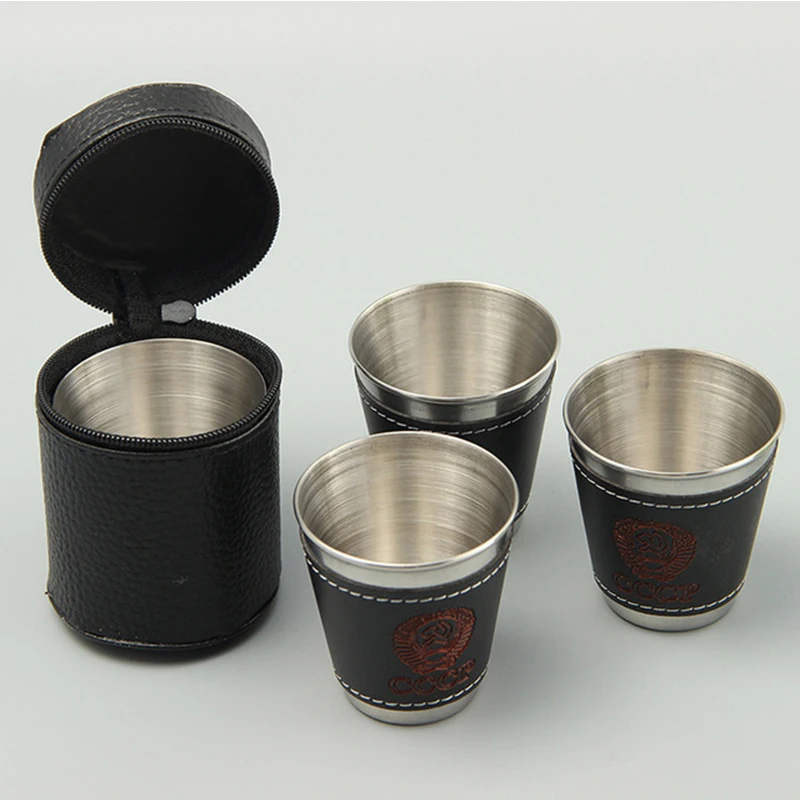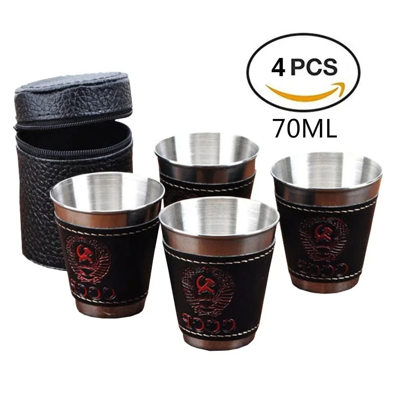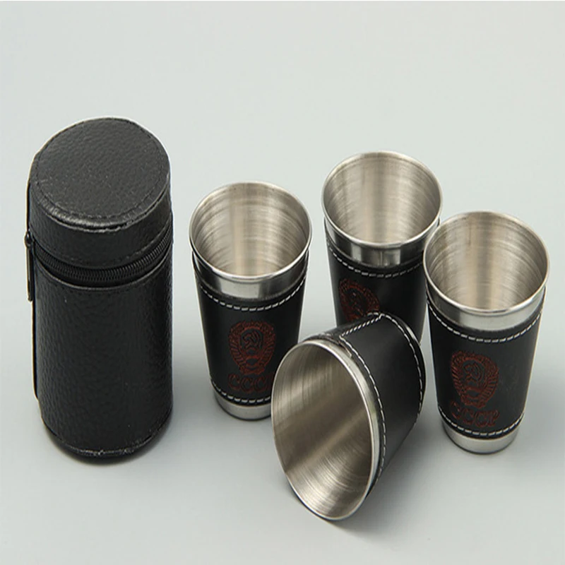 1 упаковка из искусственной кожи 4 шт./лот, 70 мл, походная посуда, походные чашки, набор, принадлежности для пикника, нержавеющая сталь, чашка для вина, пива, кружки для виски, искусственная кожа