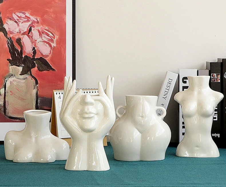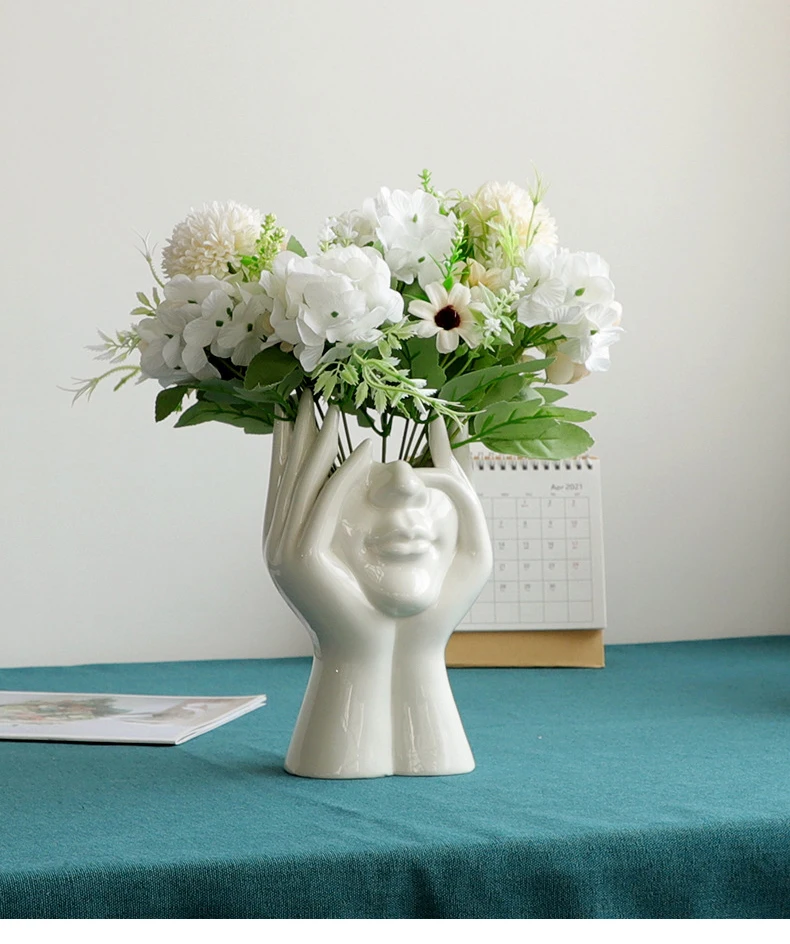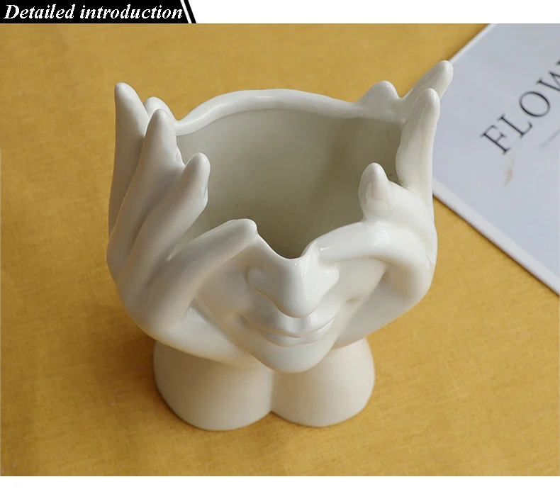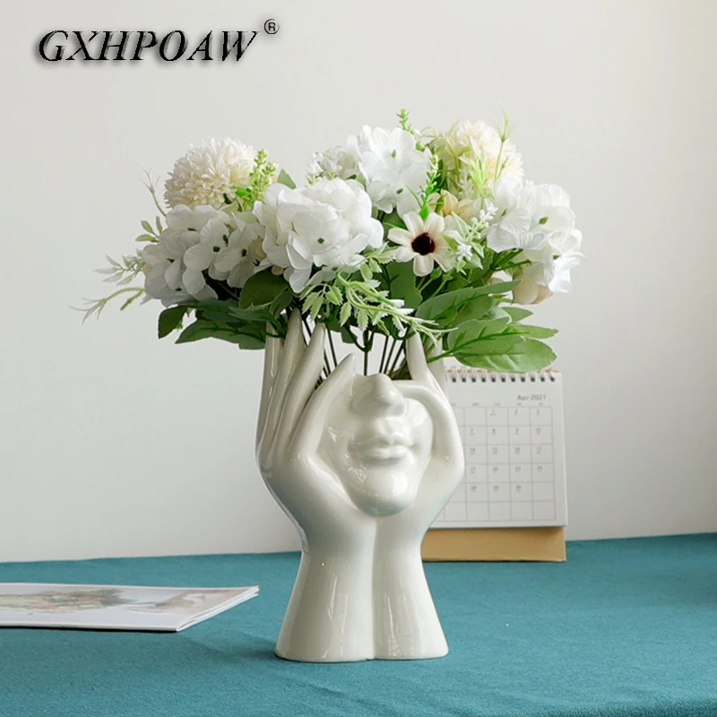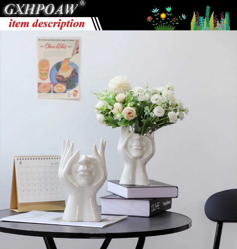 Новинка 2021, керамическая ваза для цветов с человеческим лицом, художественная креатрийная скульптура, голова человека, абстрактная растительная Цветочная горшок, композиция для домашнего декора