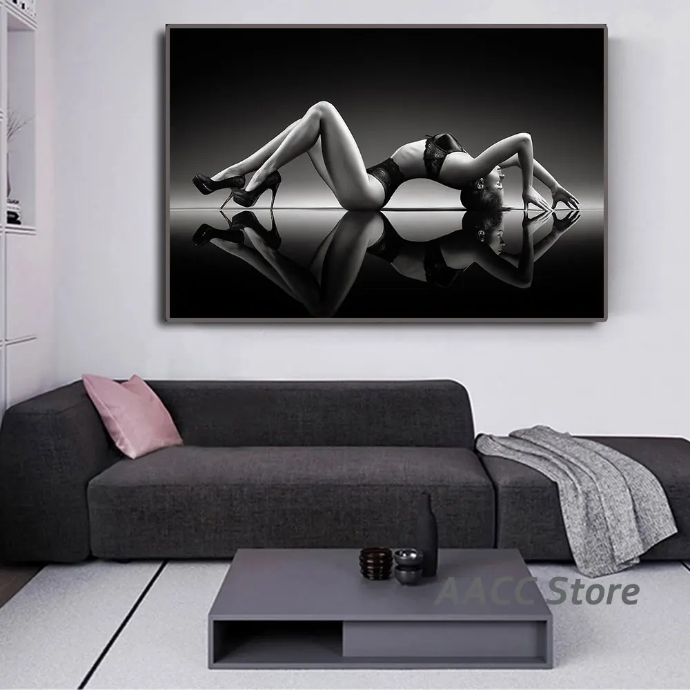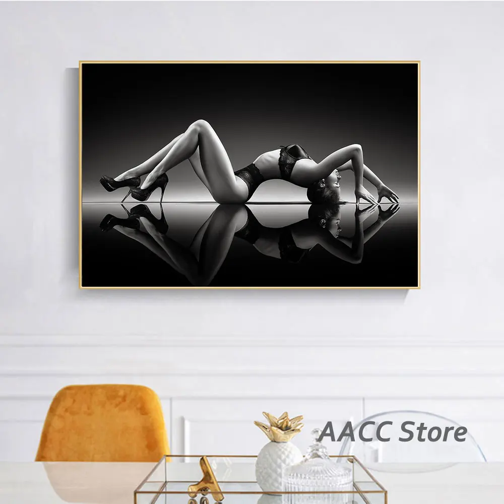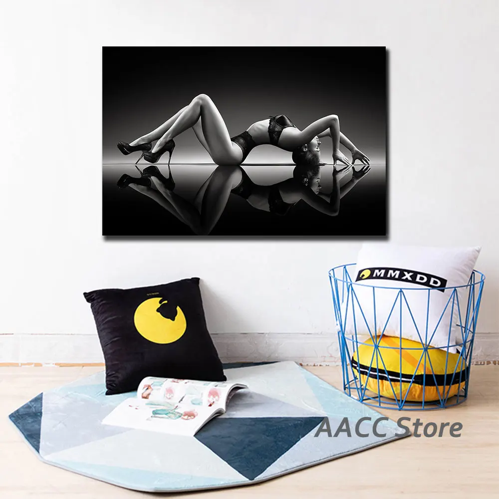 Модный постер черного и белого цветов на высоких каблуках, женский холст с принтом, привлекательная Красивая винтажная картина с длинными хвостовиками для девочек, домашний декор