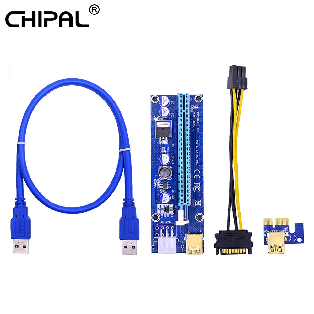CHIPAL 100 шт. VER009S Golden PCI-E PCIE Riser Card 009s 6pin PCI Express Adapter 1X 16X удлинитель USB3.0 кабель для видеокарты GPU