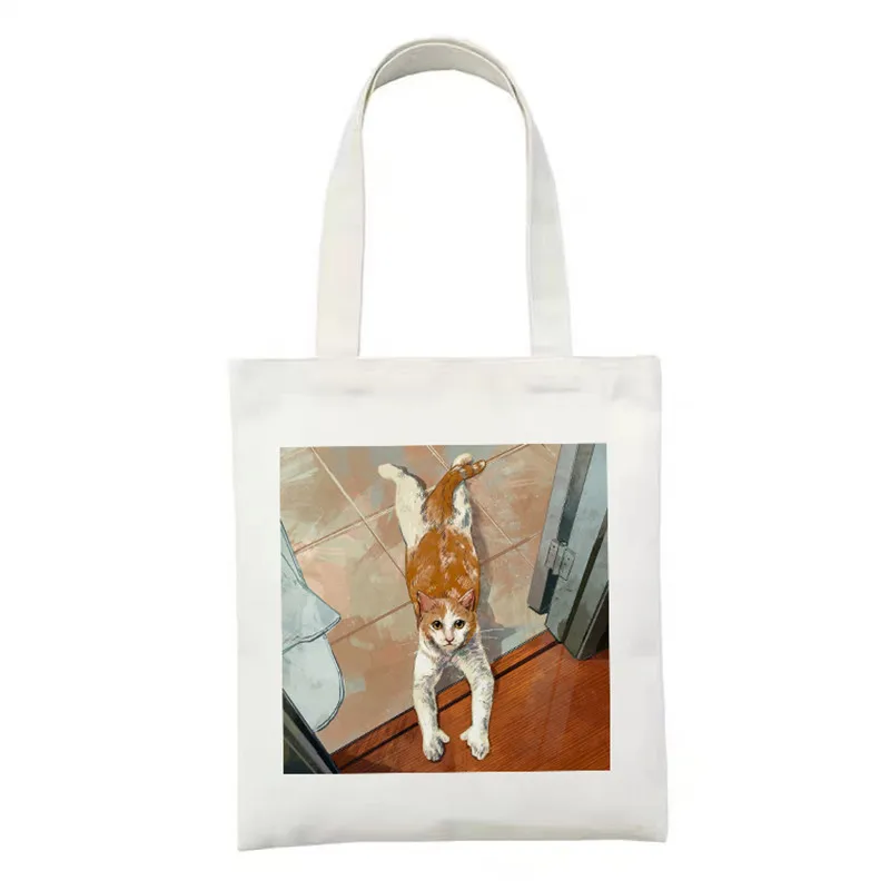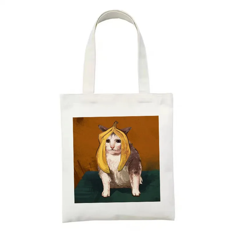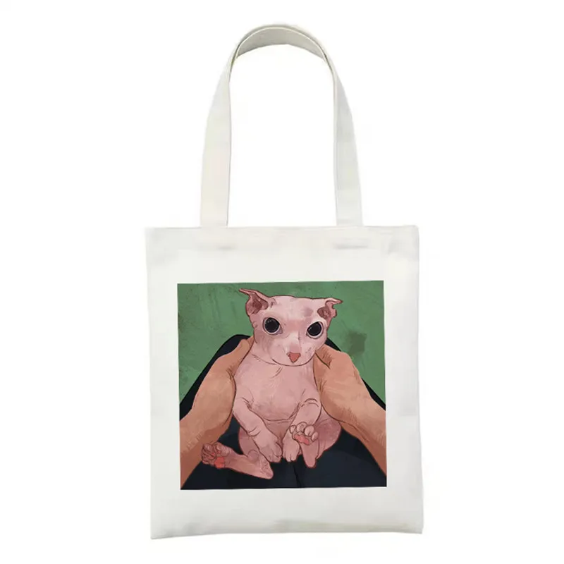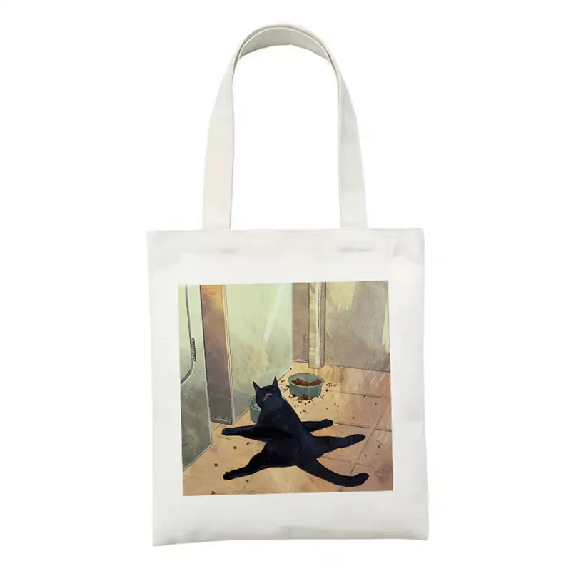 Винтажная Холщовая Сумка в стиле Харадзюку С мультяшным котом, большая сумка-тоут, сумки для покупок для девочек и женщин, женские многоразовые ручные сумки