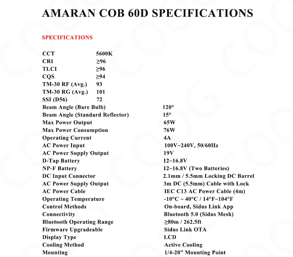 COB 60D Bluetooth Operating Range≥80m / 262.5ft