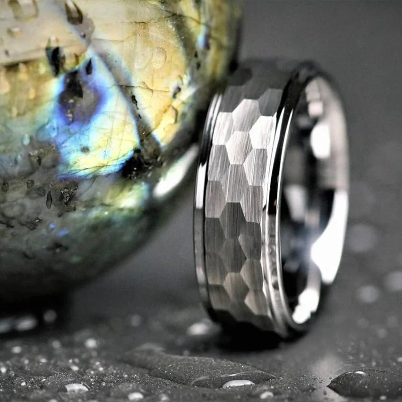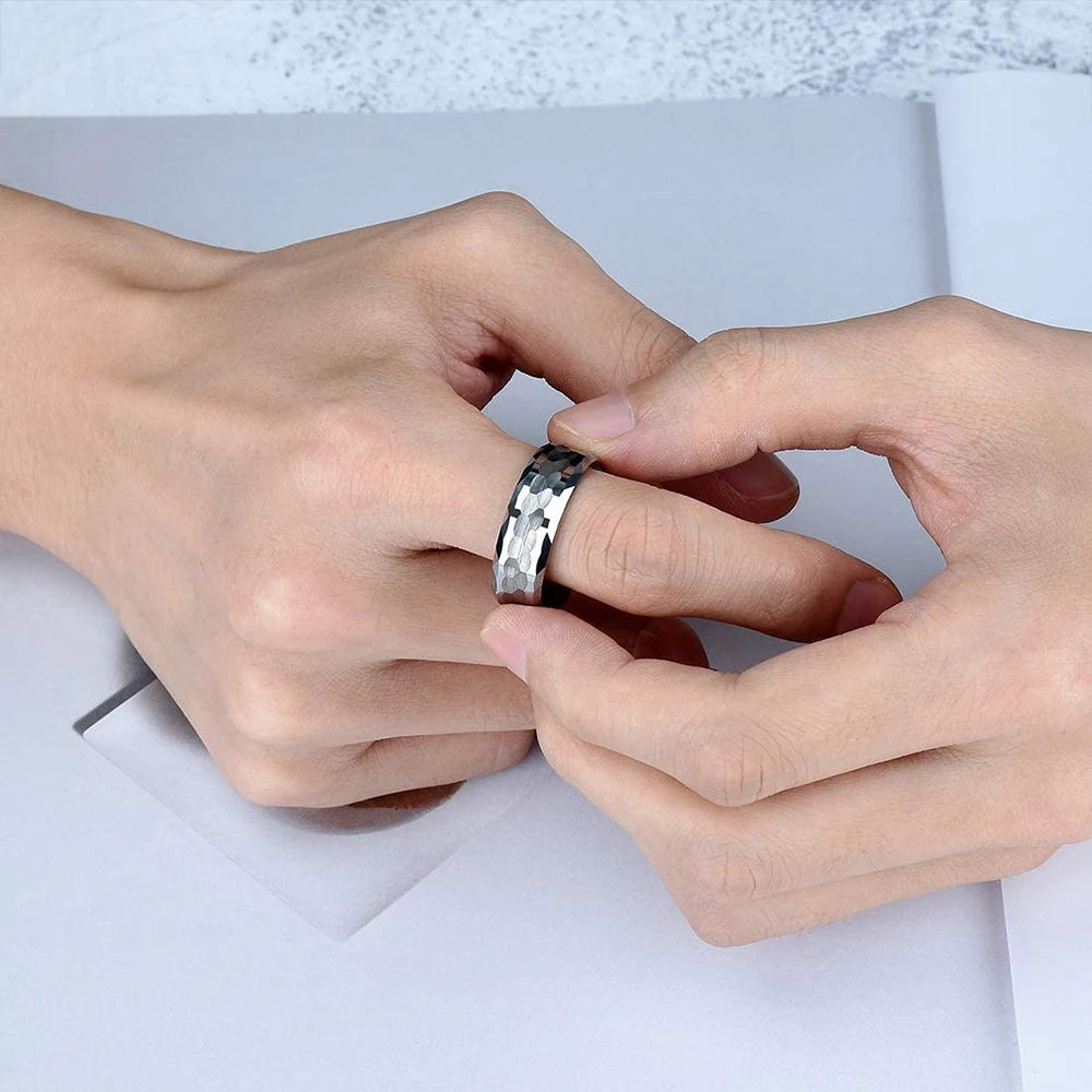 Уникальное мужское кольцо из карбида вольфрама с черным молотком, 8...