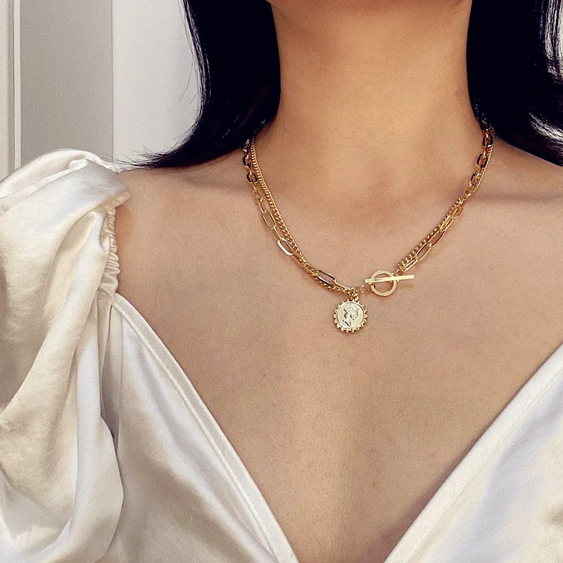 Женское колье с резным золотым монета с портретом FNIO, колье-чокер в стиле панк, серебряного цвета многослойный ювелирные изделия, 2021