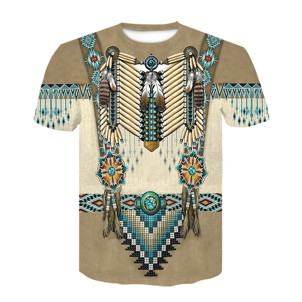 Футболка мужская оверсайз с коротким рукавом, топ в стиле хип-хоп, с принтом 3D, в стиле индейцев, одежда в стиле барокко, лето
