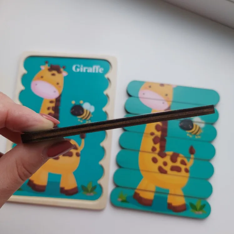 Очень качественные детские пазлы развивашки. На одной планшетке двое животных с двух сторон. Очень увлекательно, деткам от годика можно уже давать. Дерево качественное, гладкое. Рекомендую, есть много разных дизайнов. Я довольна покупкой. Буду брать ещё. Советую хороший магазин. Доставка меньше месяца.