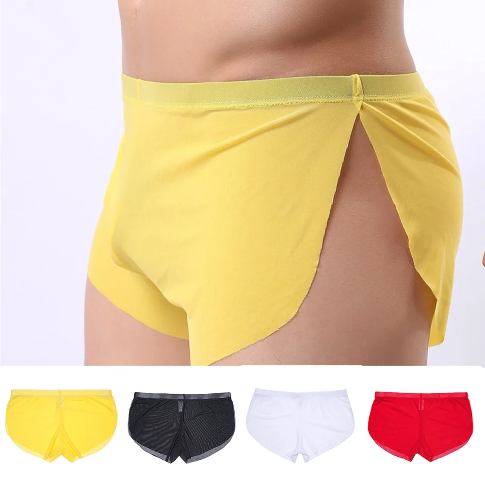 Сексуальные мужские трусы Mandylandy из ледяного шелка, ультратонкие полупрозрачные трусы с Боковым Разрезом и заниженной талией