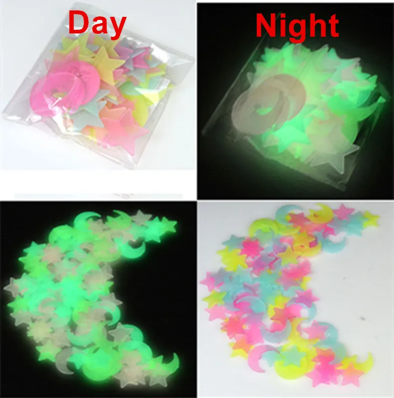 100pcs3D звезды и луна светится в темноте на стену, наклейки в детс...
