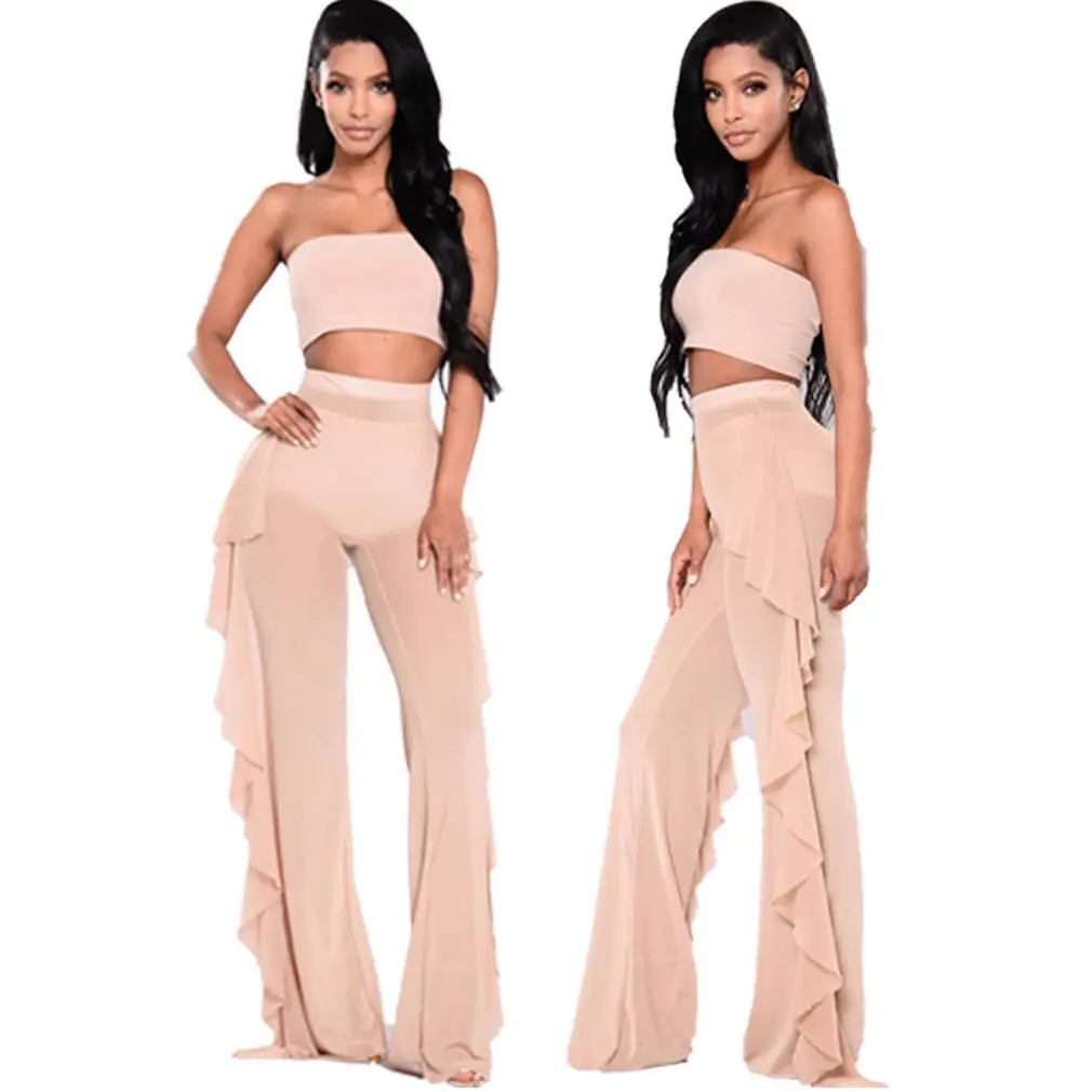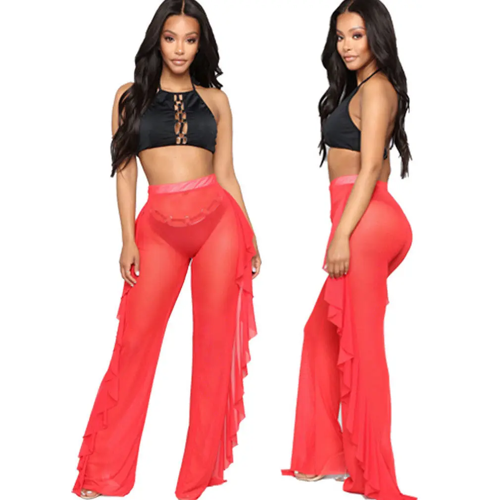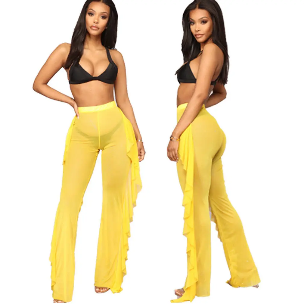 Сексуальные женские прозрачные расклешенные пляжные длинные брюки с...
