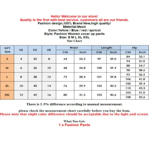 Прежде чем купить эту товарную позицию, просим тщательно свериться с таблицей размеров. Обратите внимание что небольшая разница в цвете считается приемлемой. Это может быть связано с положением источника света и с настройками экрана. Что вы получаете: 1 x Модные брюки