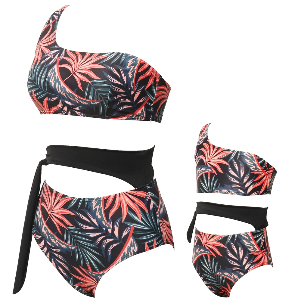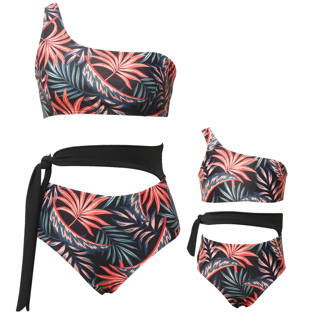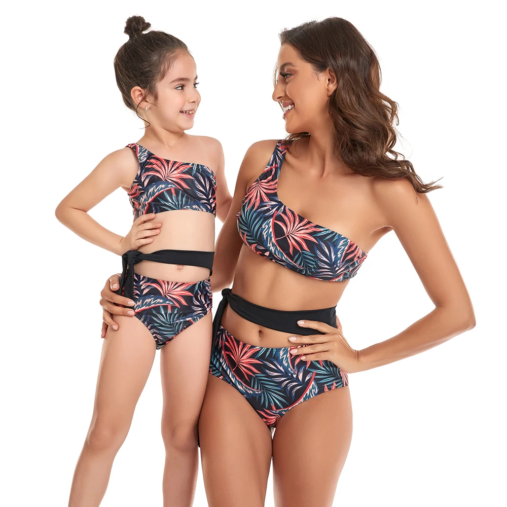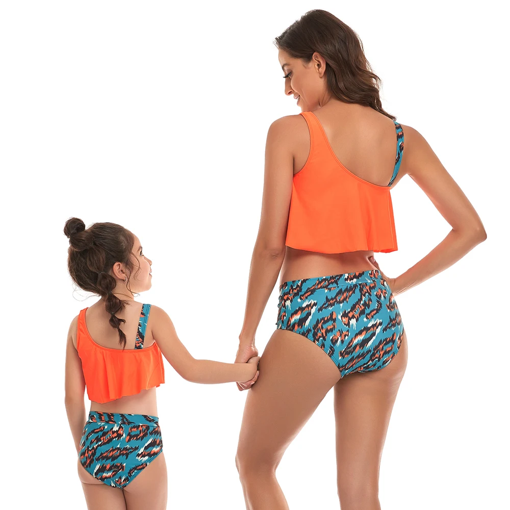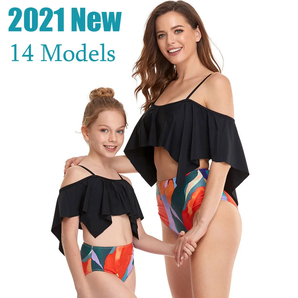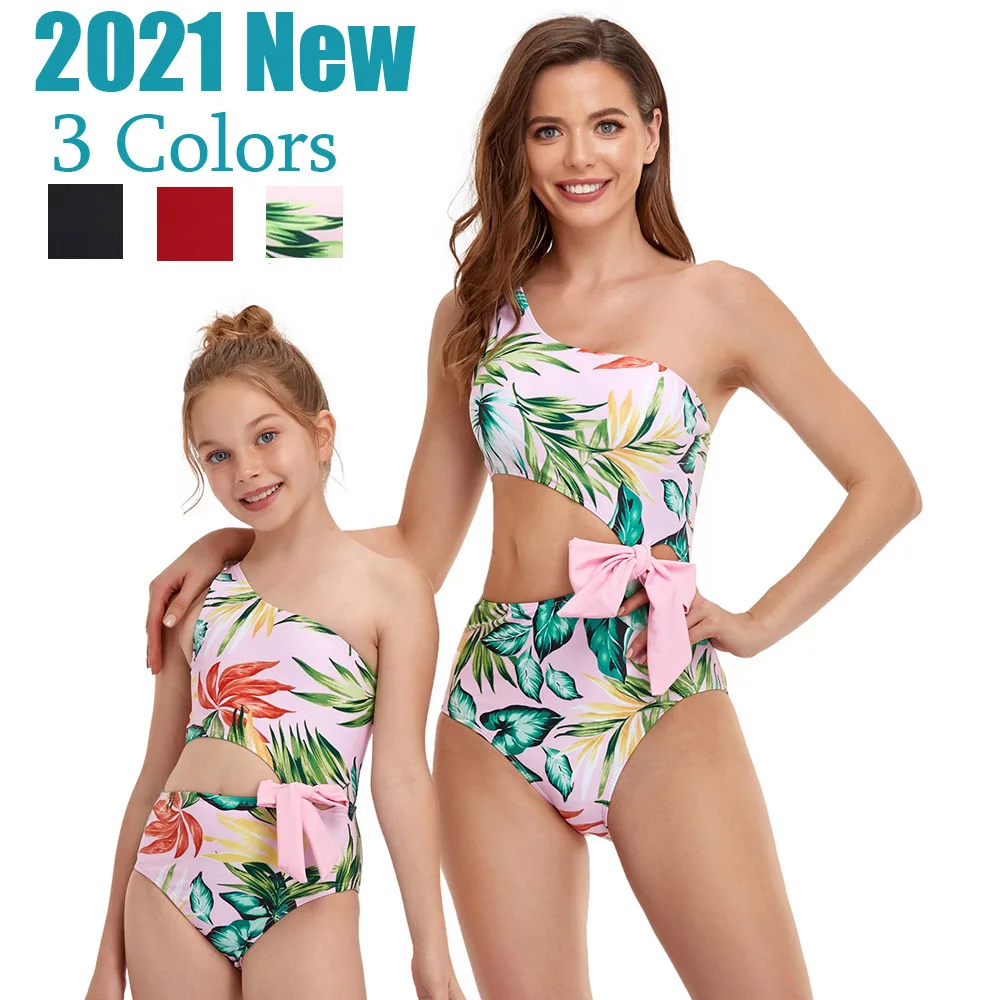 2021 Новый Семейные комплекты купальник Для женщин и девочек, раздел-детская Одна деталь пляжные комплекты бикини, купальный костюм одежда для купания, костюмы