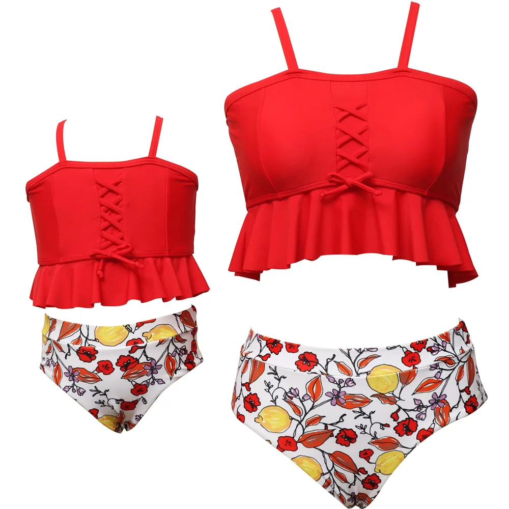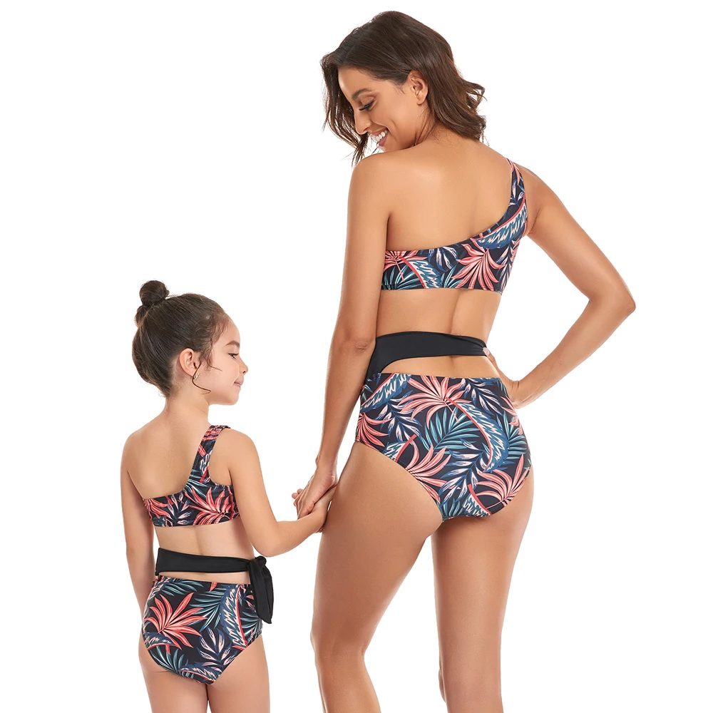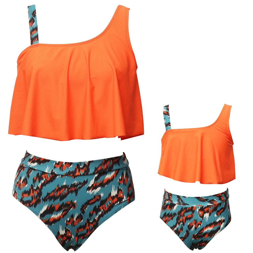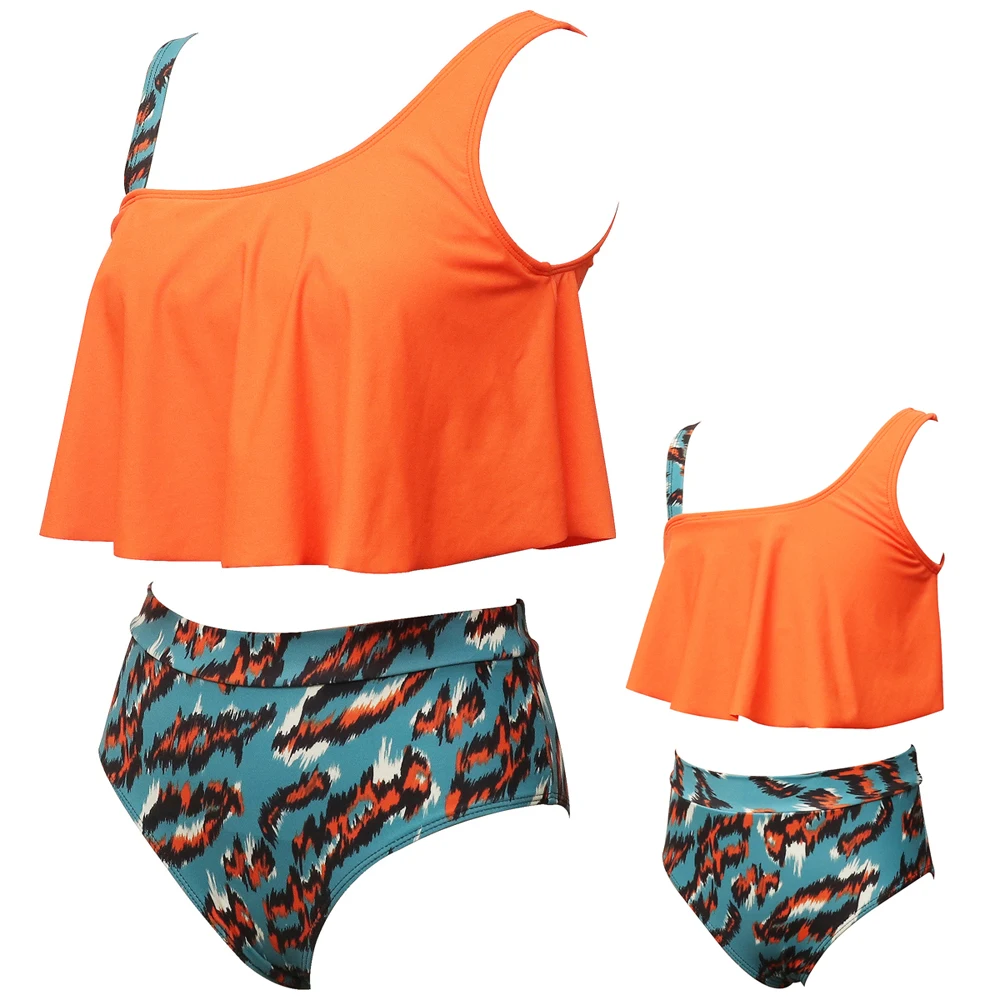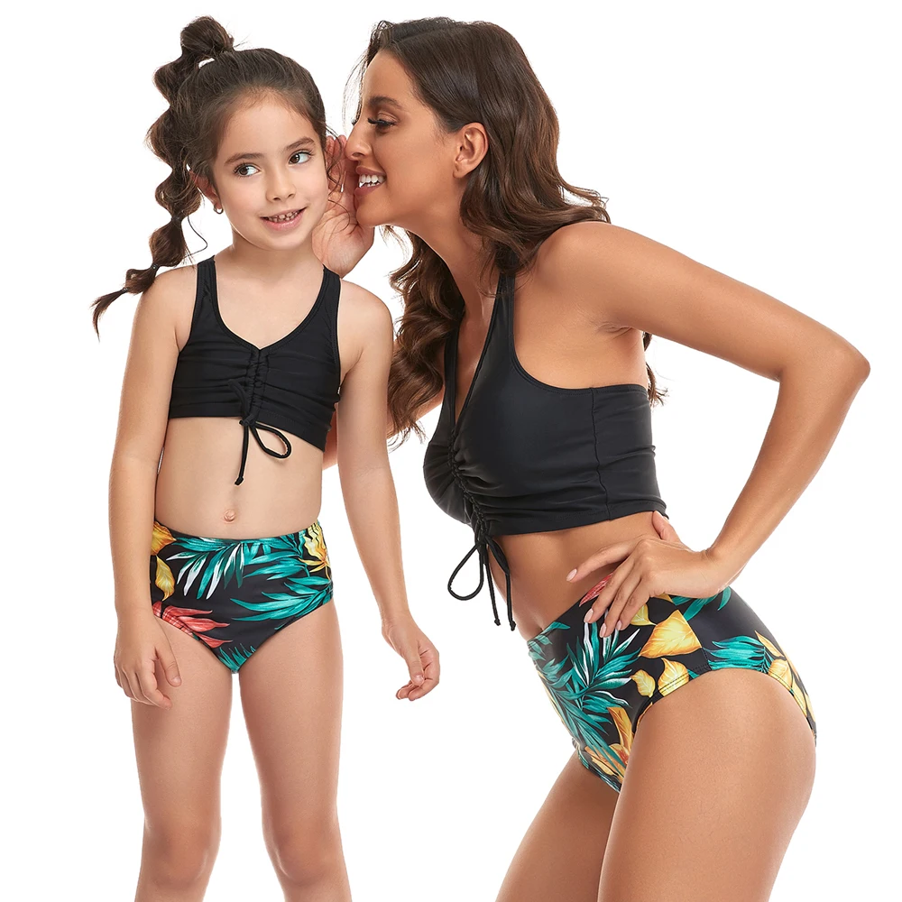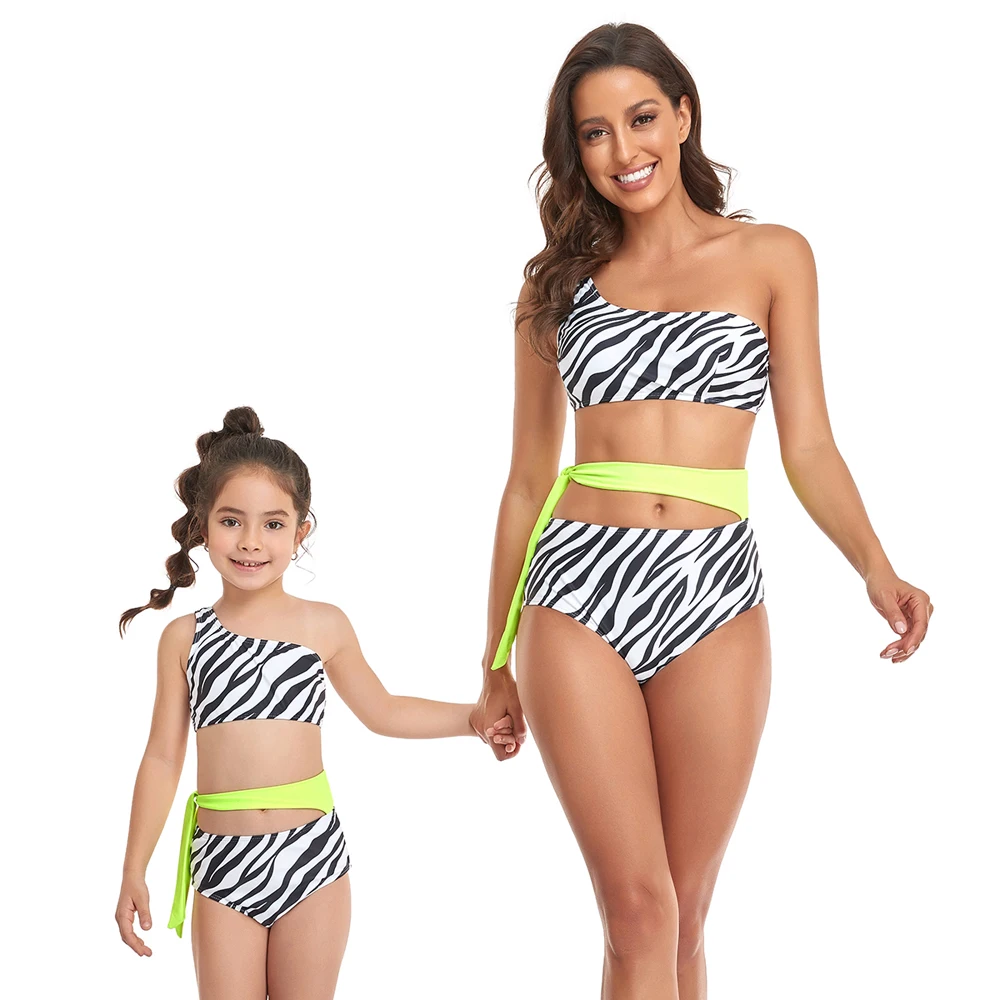 2021 Новый Семейные комплекты купальник Для женщин и девочек, раздел-детская Одна деталь пляжные комплекты бикини, купальный костюм одежда для купания, костюмы