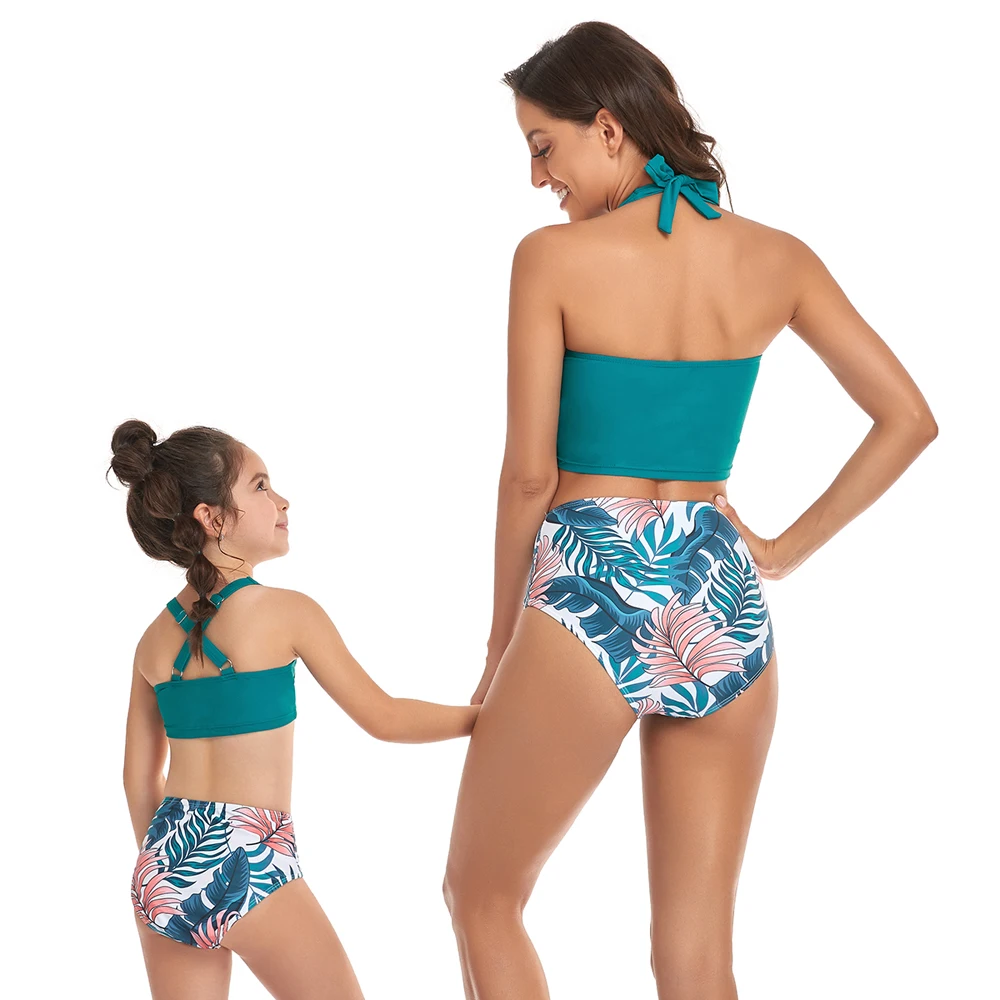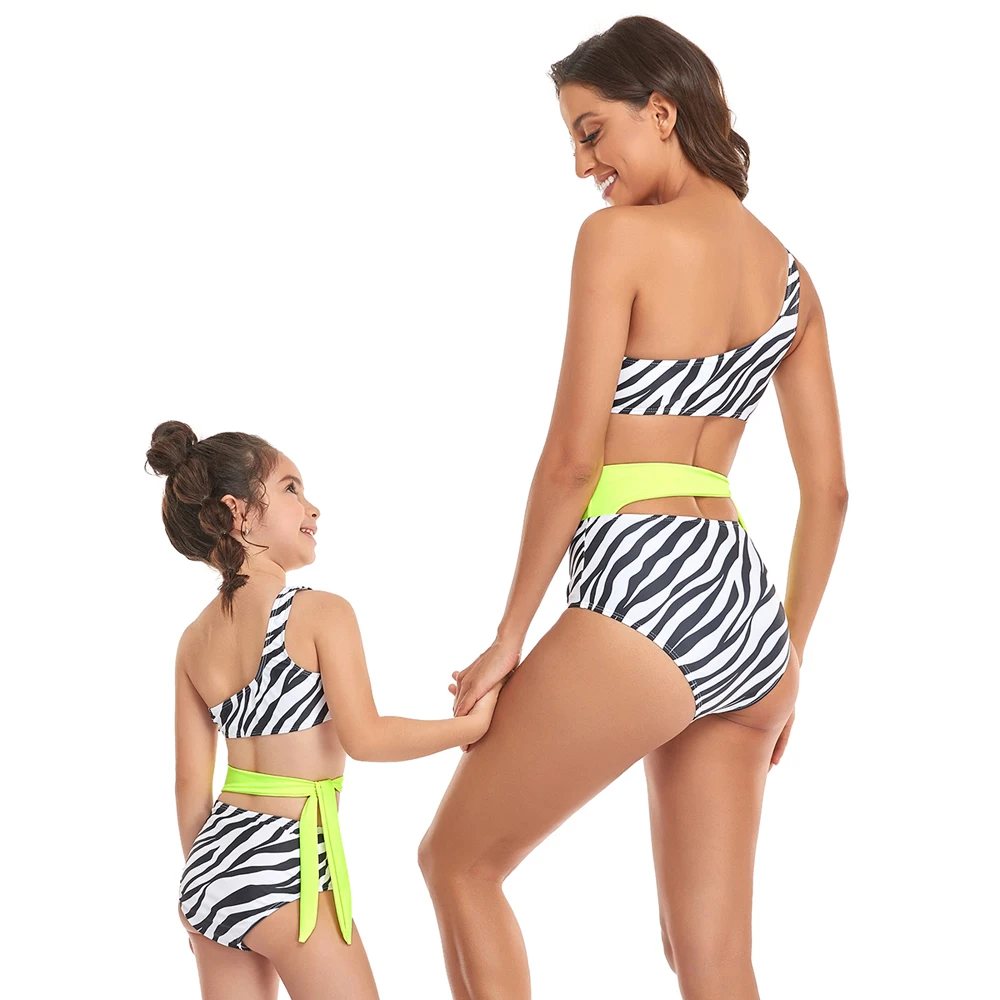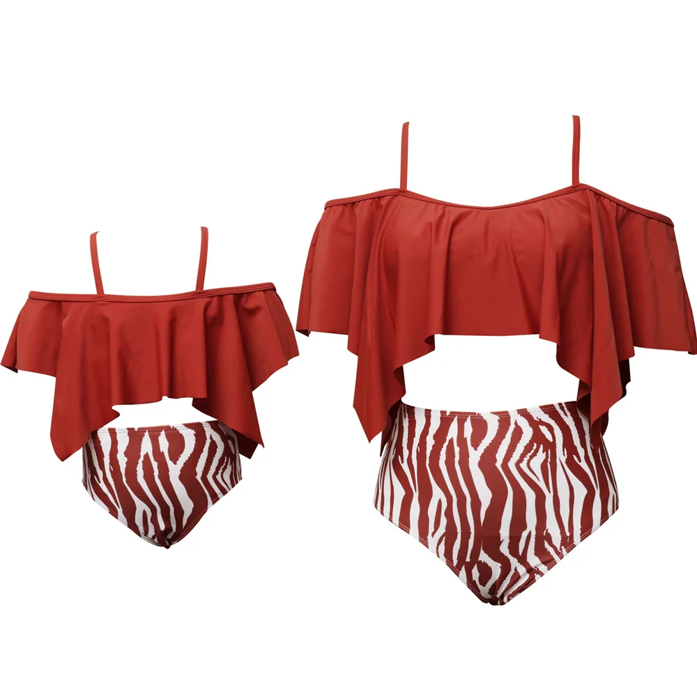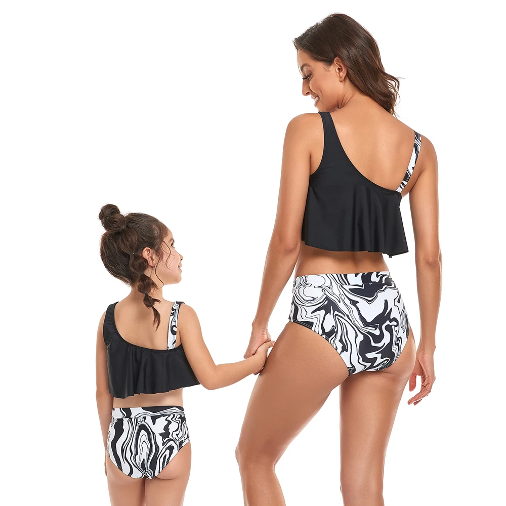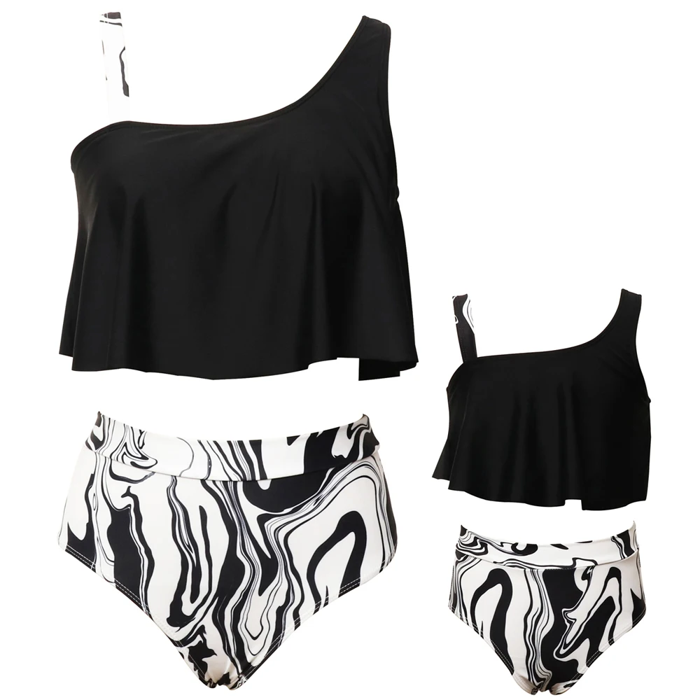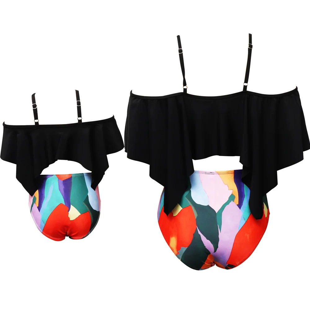 2021 Новый Семейные комплекты купальник Для женщин и девочек, раздел-детская Одна деталь пляжные комплекты бикини, купальный костюм одежда для купания, костюмы