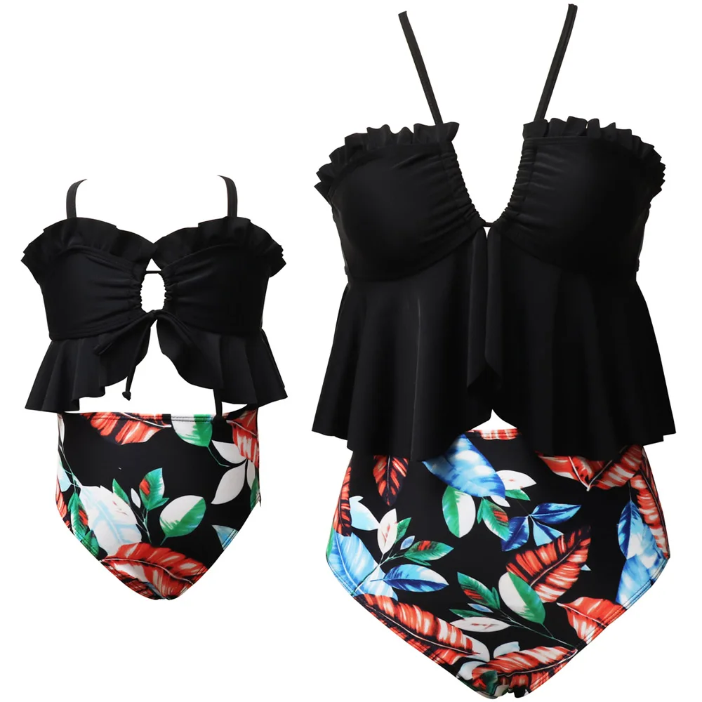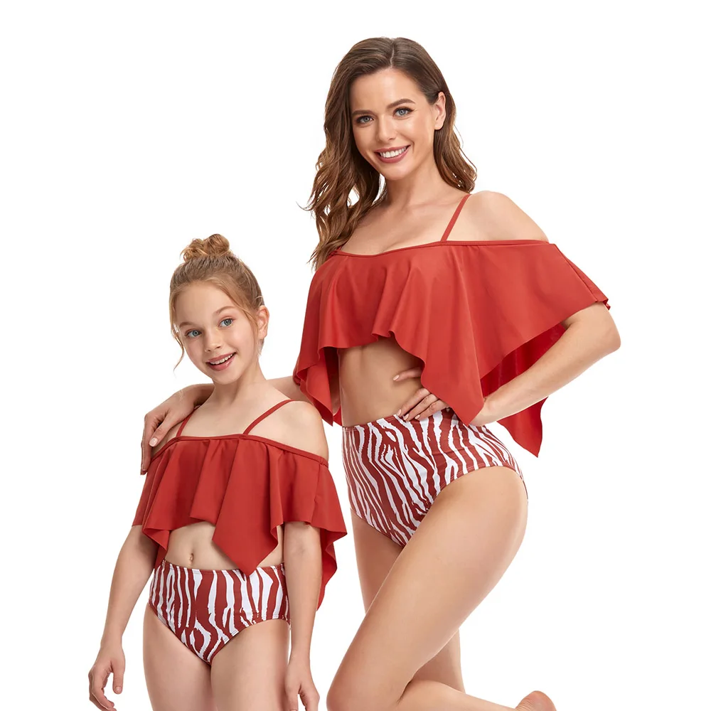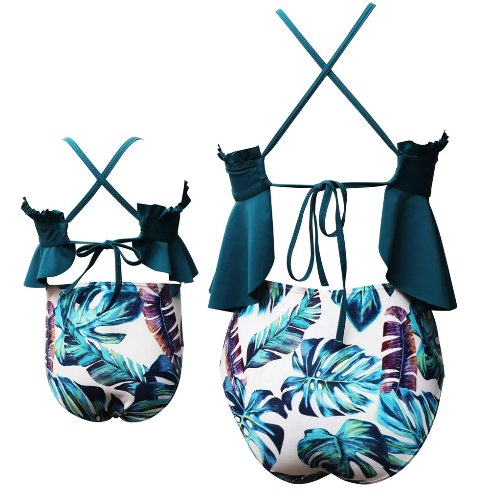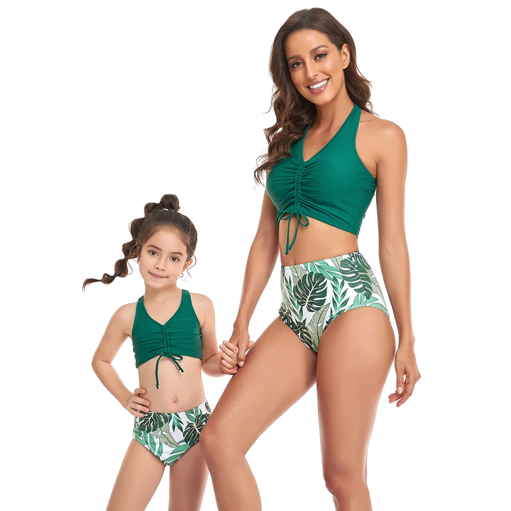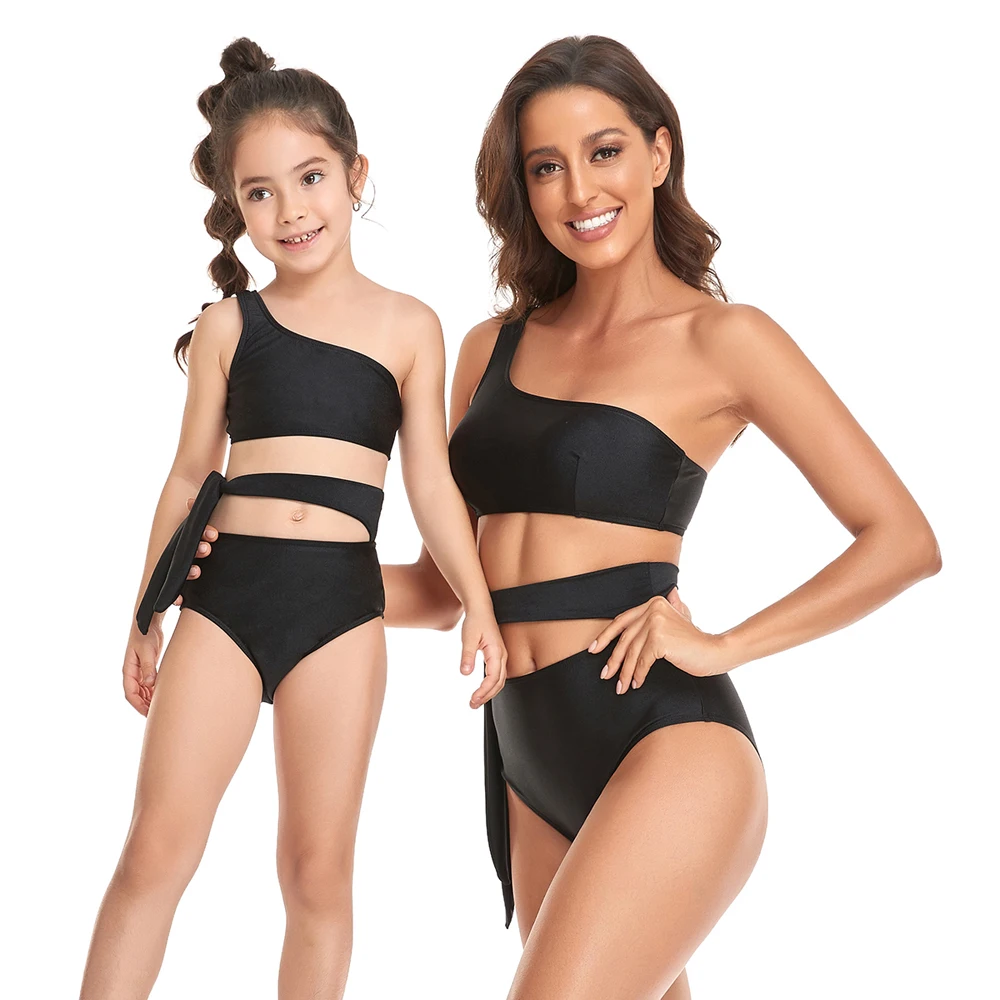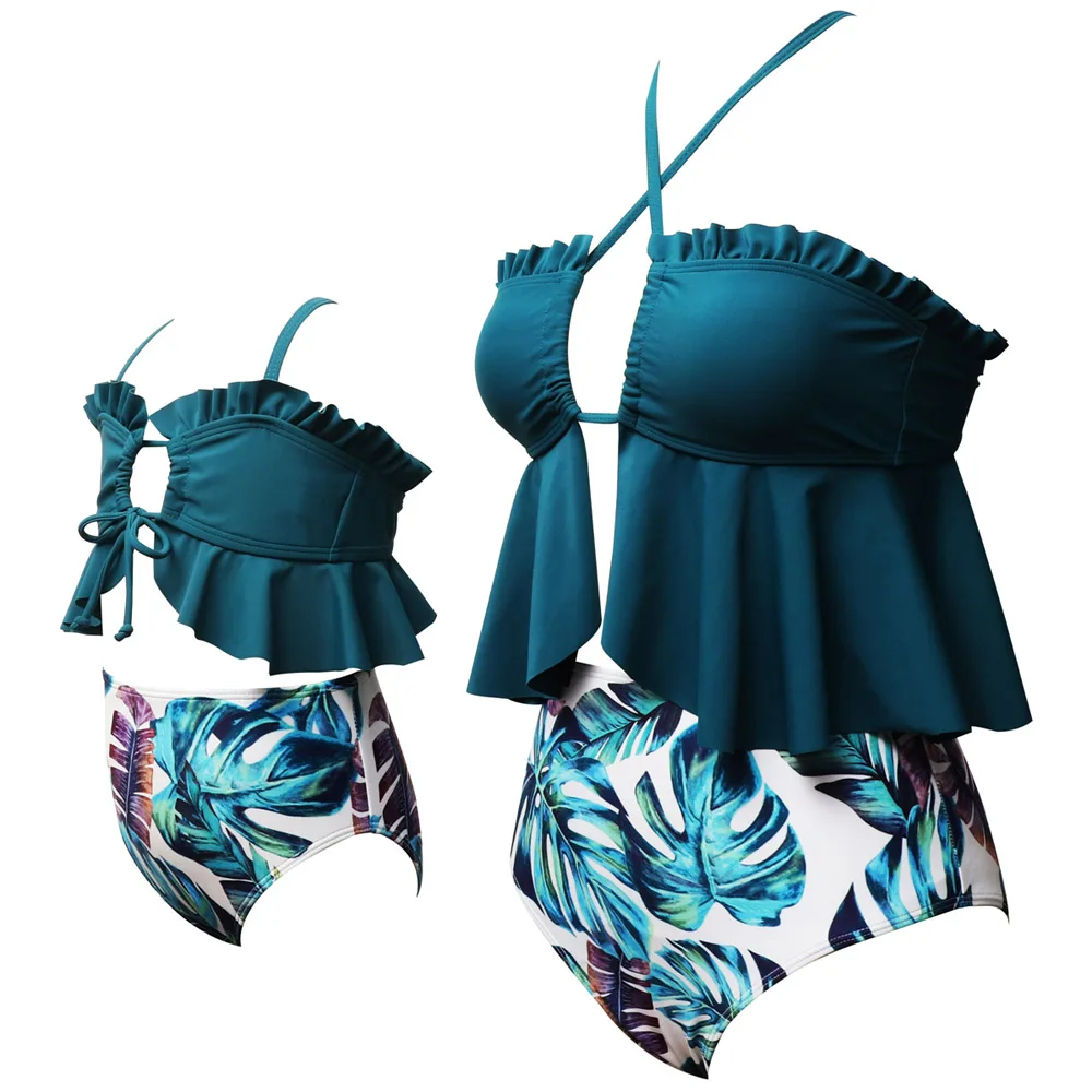 2021 Новый Семейные комплекты купальник Для женщин и девочек, раздел-детская Одна деталь пляжные комплекты бикини, купальный костюм одежда для купания, костюмы