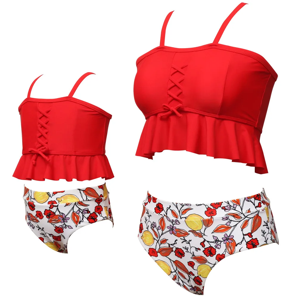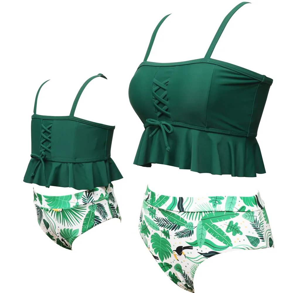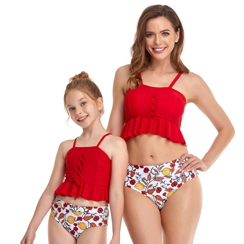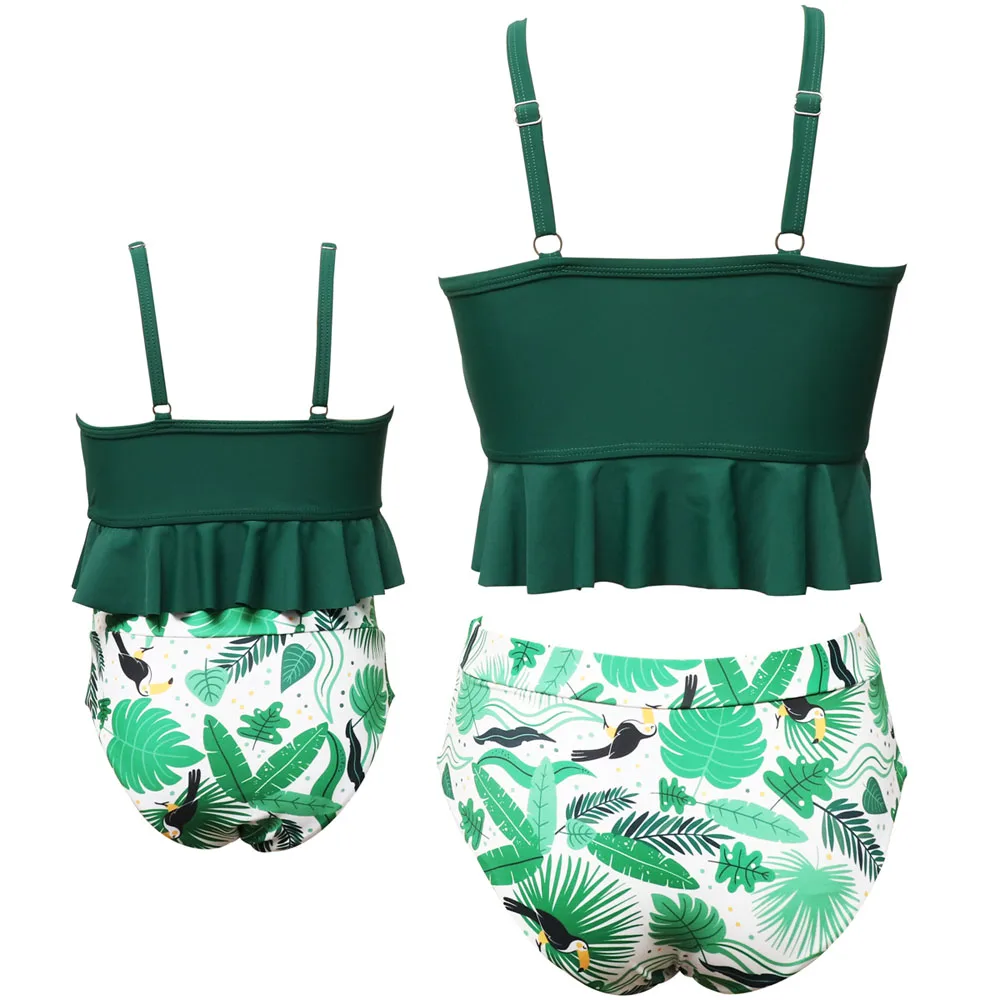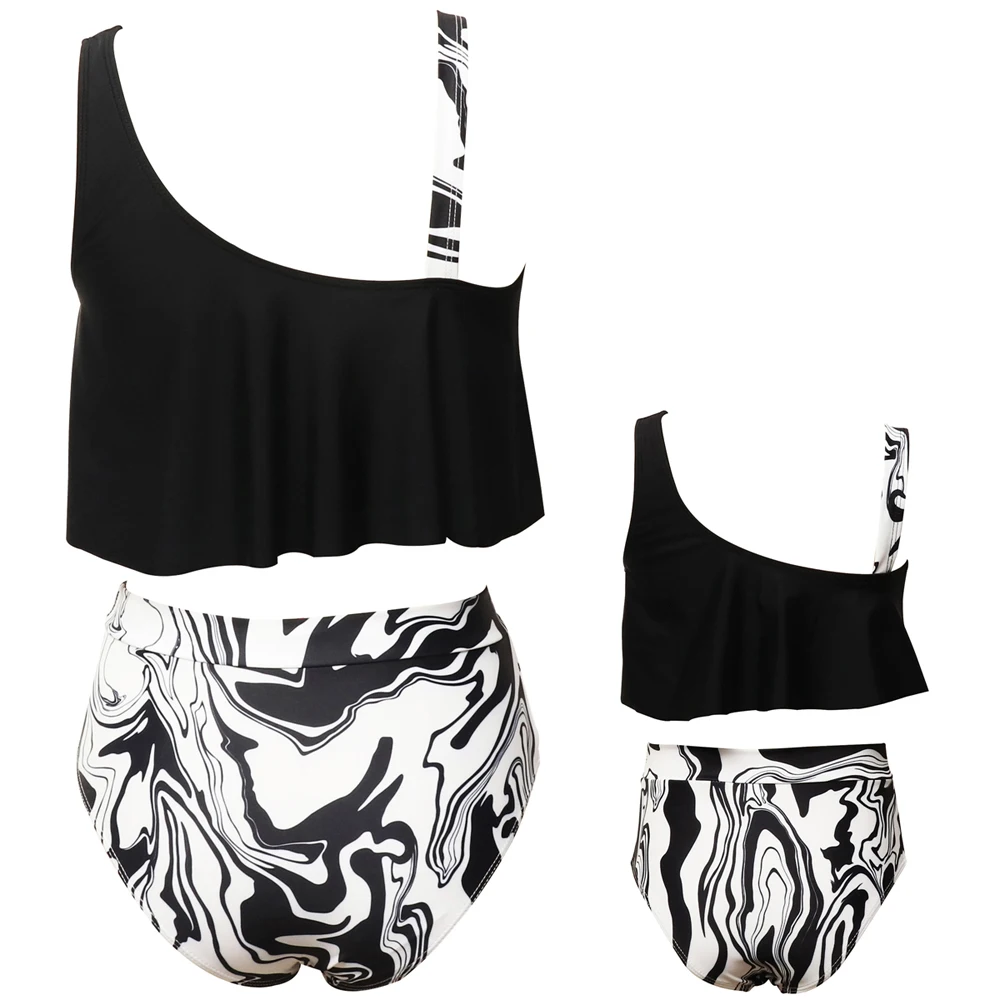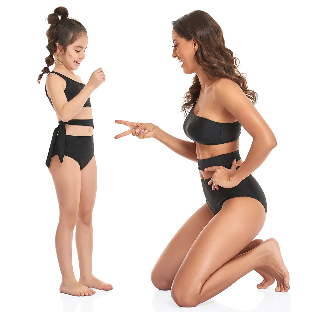2021 Новый Семейные комплекты купальник Для женщин и девочек, раздел-детская Одна деталь пляжные комплекты бикини, купальный костюм одежда для купания, костюмы