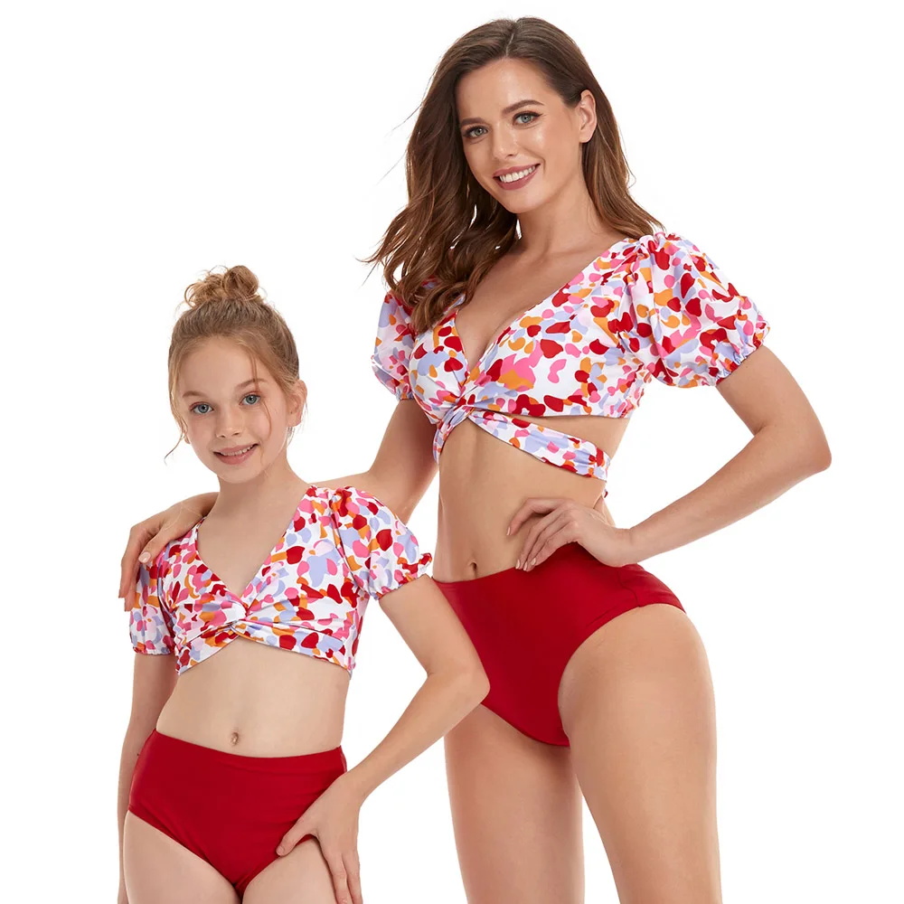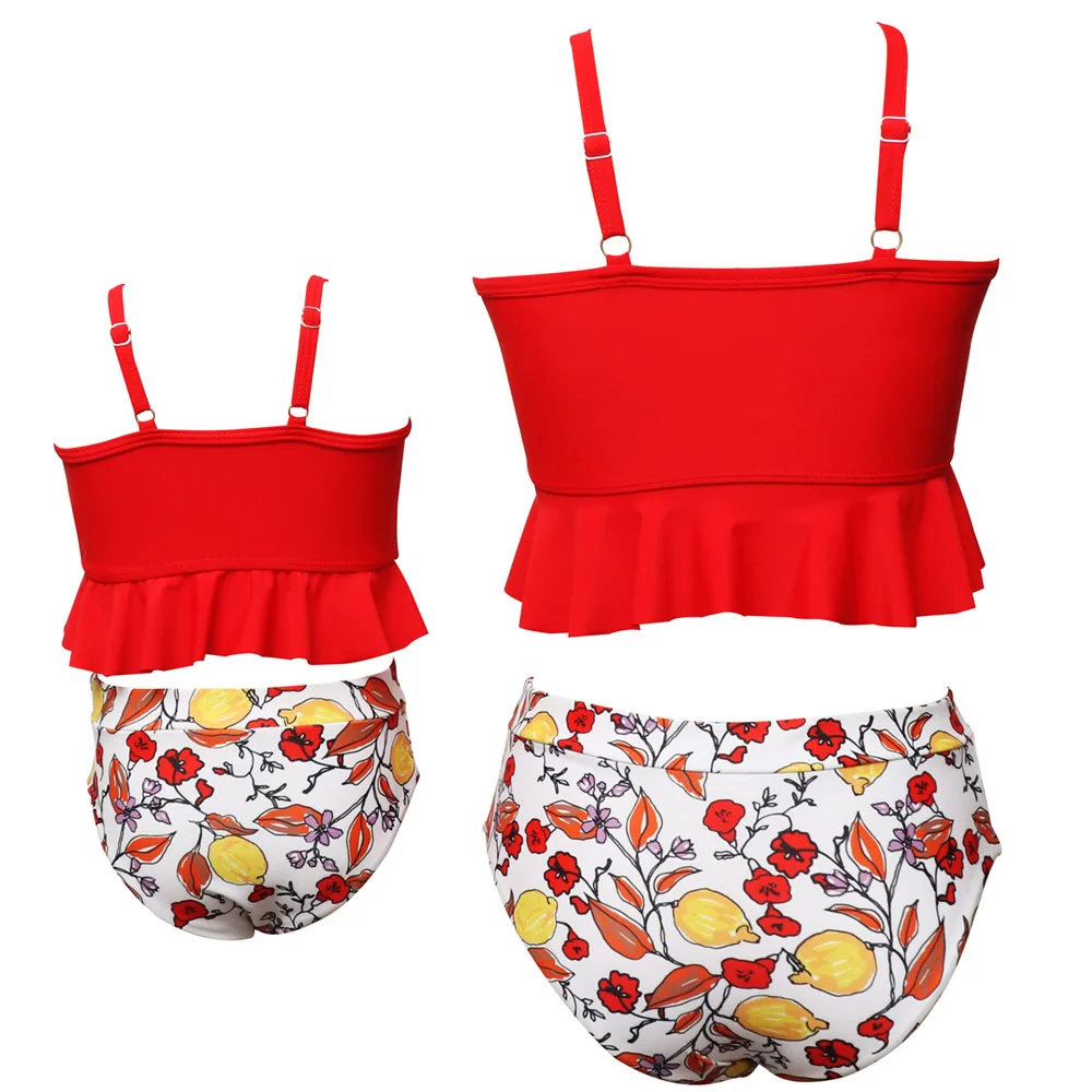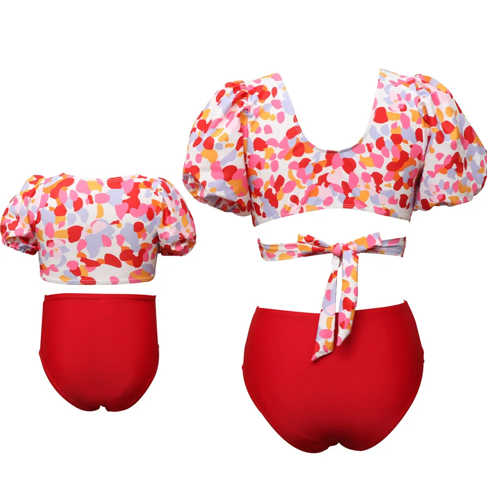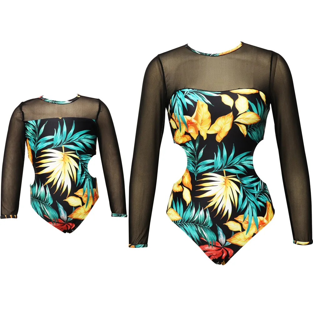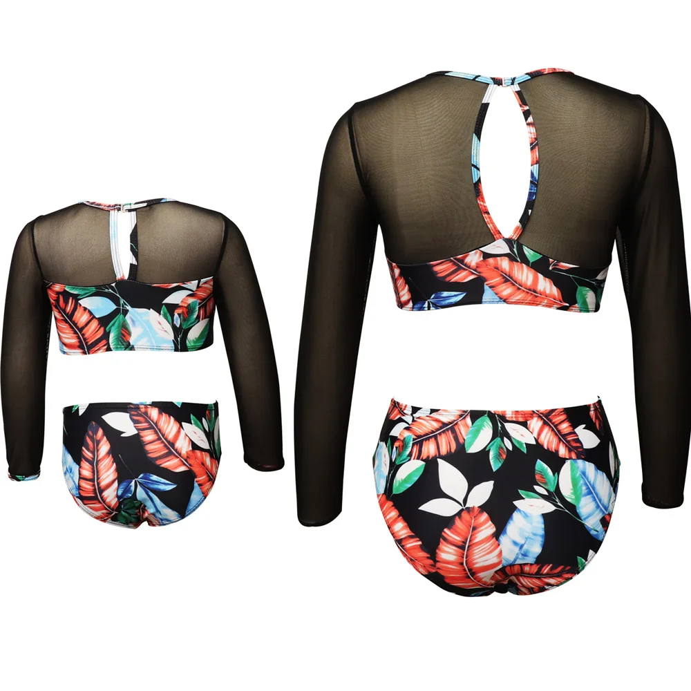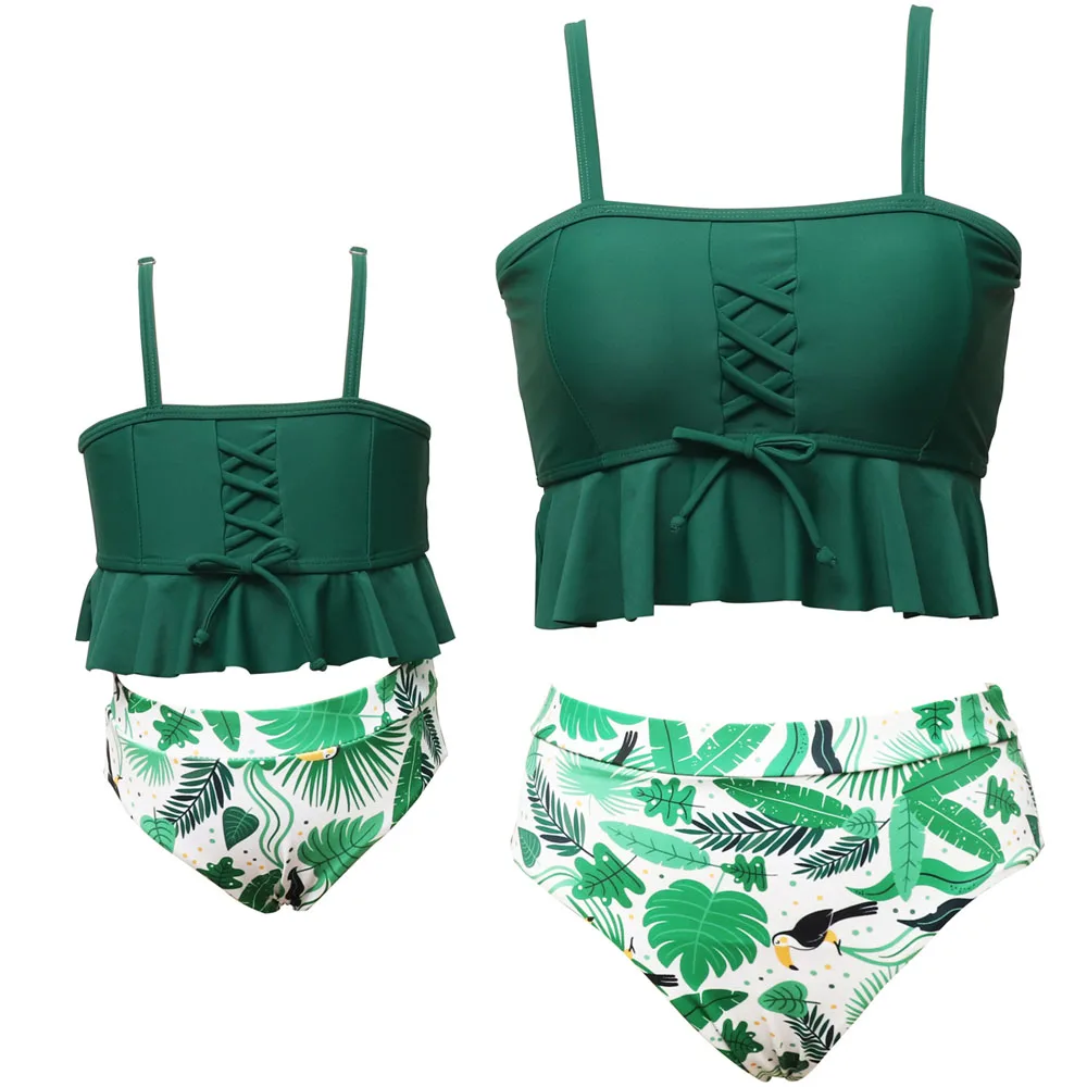 2021 Новый Семейные комплекты купальник Для женщин и девочек, раздел-детская Одна деталь пляжные комплекты бикини, купальный костюм одежда для купания, костюмы