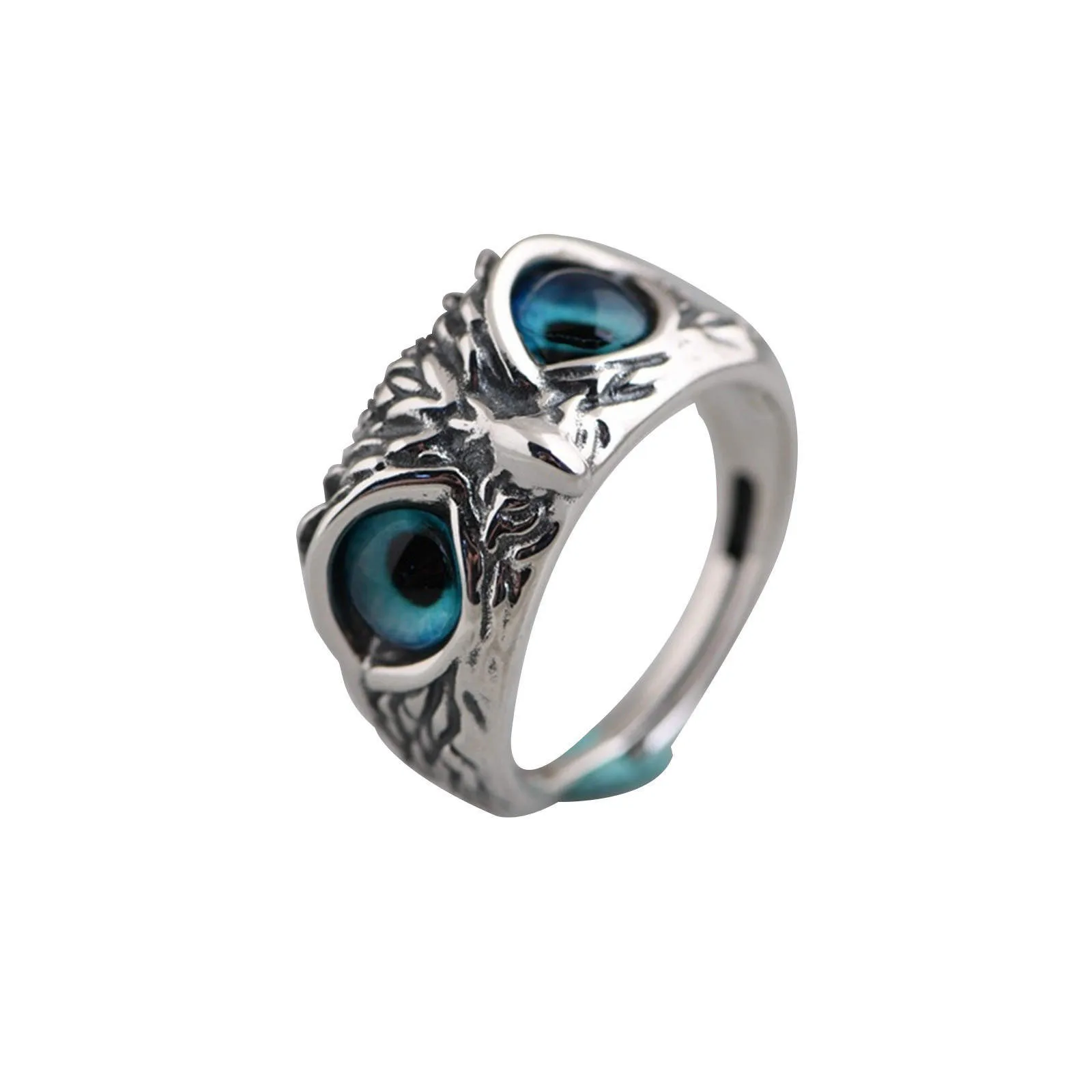 Кольцо в виде совы с голубыми глазами для женщин, девушек, мужчин, парные винтажные готические открытые Регулируемые кольца с животными, массивные кольца, ювелирные изделия в подарок