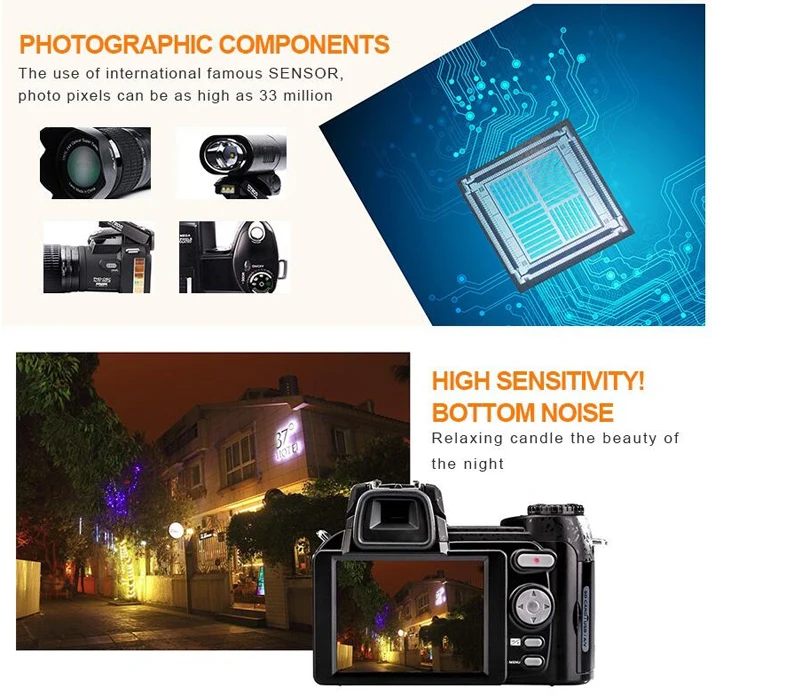 Цифровая камера ELRVIKE 2022 HD POLO D7200, 33 миллиона пикселей, а...