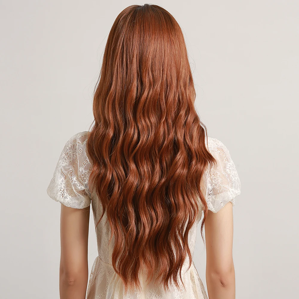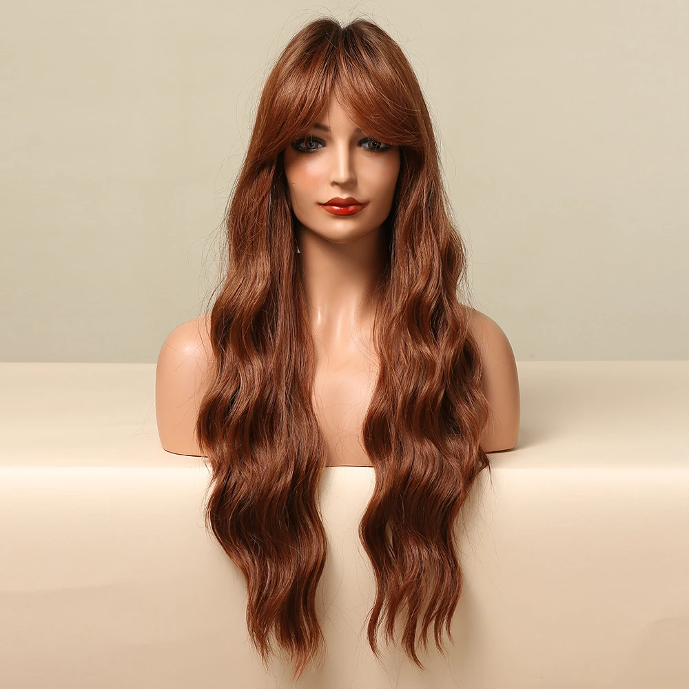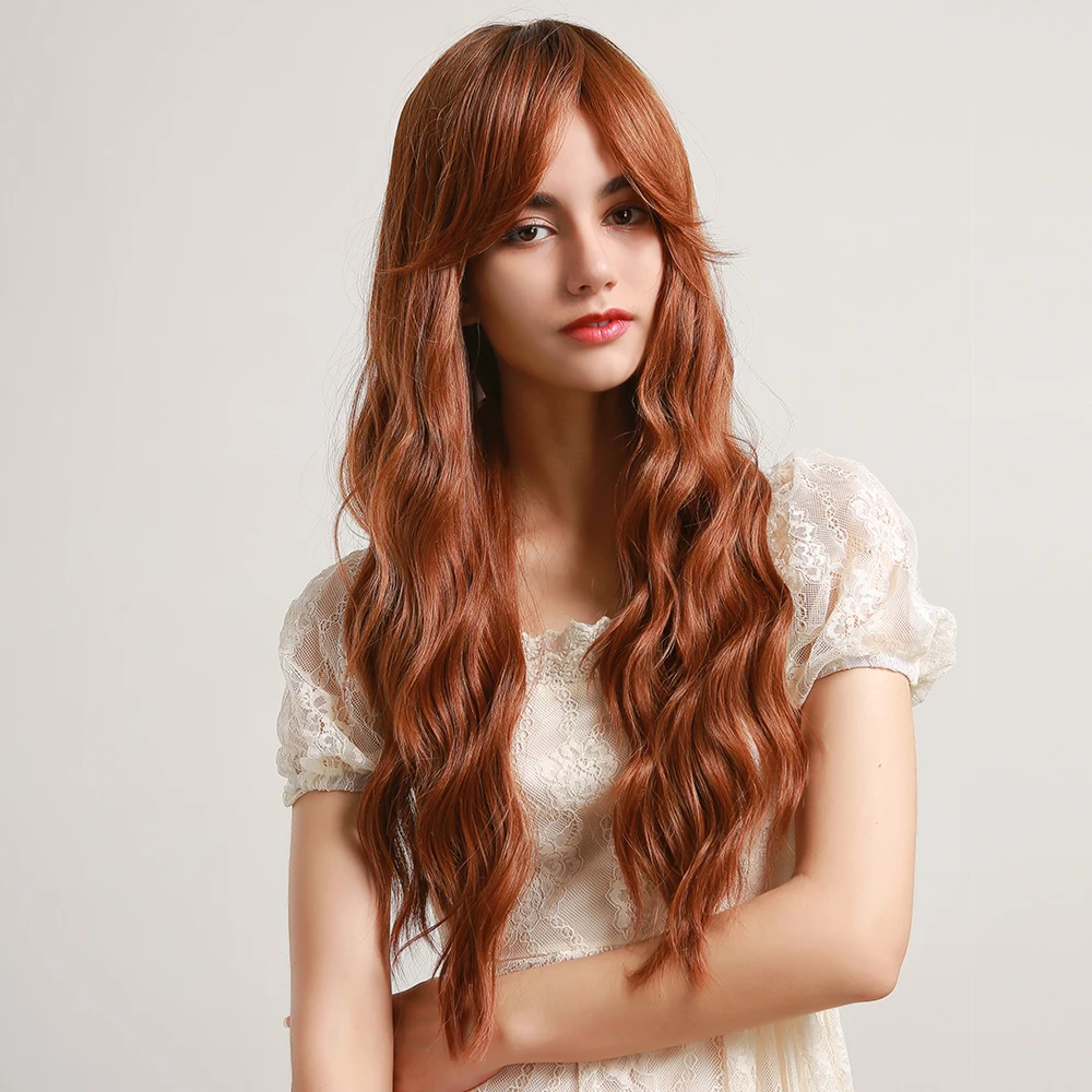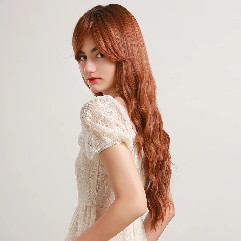 Парик LOUIS FERRE с имбирными волосами, длинные волнистые парики с челкой, синтетические парики Cospaly красного, коричневого цвета для женщин, афро, термостойкий парик, мягкий