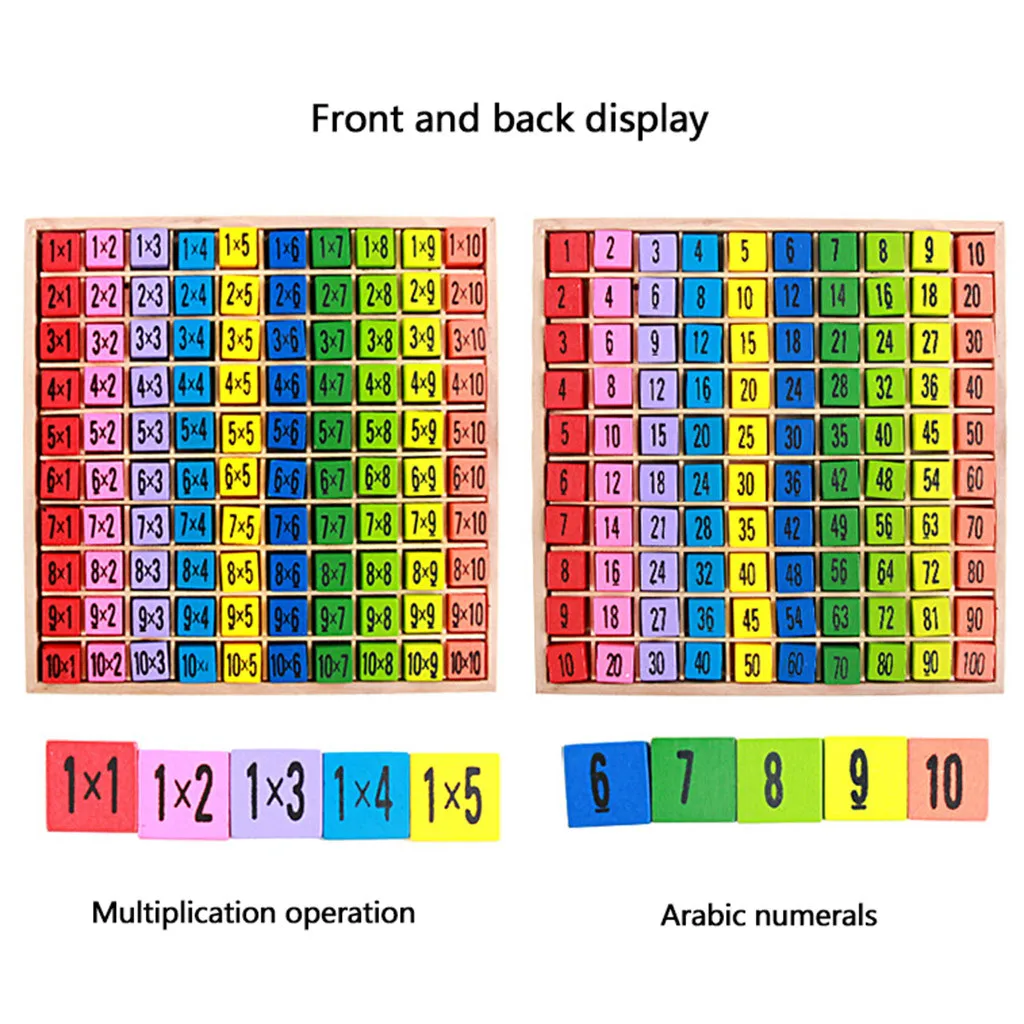 Детские деревянные игрушки для обучения, таблица умножения 99, математическая игрушка, 10*10 фигурок блоков, игрушечный стол, математическая арифметика, учебные пособия для детей