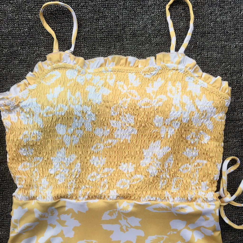 Элегантный слитный купальник в стиле ретро с пуш-ап, женский купальник большого размера с цветочным принтом, женский купальник-бандо, женский купальник