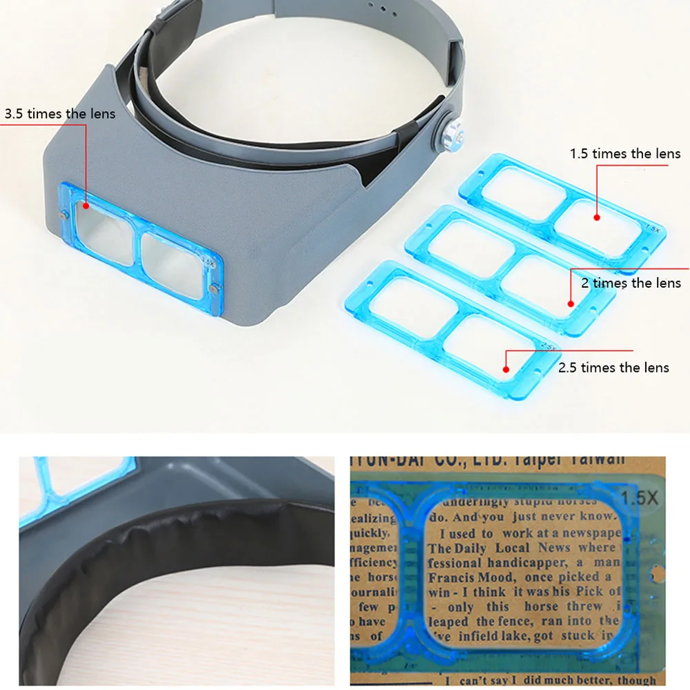 Лупа для чтения, с двойными линзами, с креплением на голове
