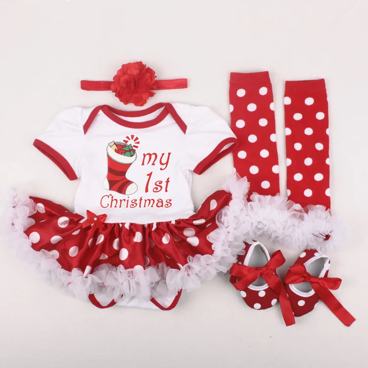 С надписью My First Christmas, на каждый день, комплект одежды из 4 предметов для новорожденных, для маленьких девочек короткий рукав; Платье-пачка; Детский комбинезон с буквенным принтом; Платье в горошек для детей от 0 до 24 месяцев