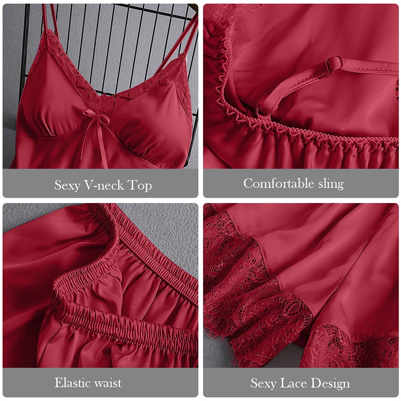 Особенности:Посылка включает в себя: женский пижамный комплектРазмер: S-2XLМатериал: полиэстерТип: твердый2021 лето осень весна 5 шт набор шелковых женских пижам набор шорты с рукавом топ с эластичной резинкой на талии брюки пижамные комплекты для отдыха.