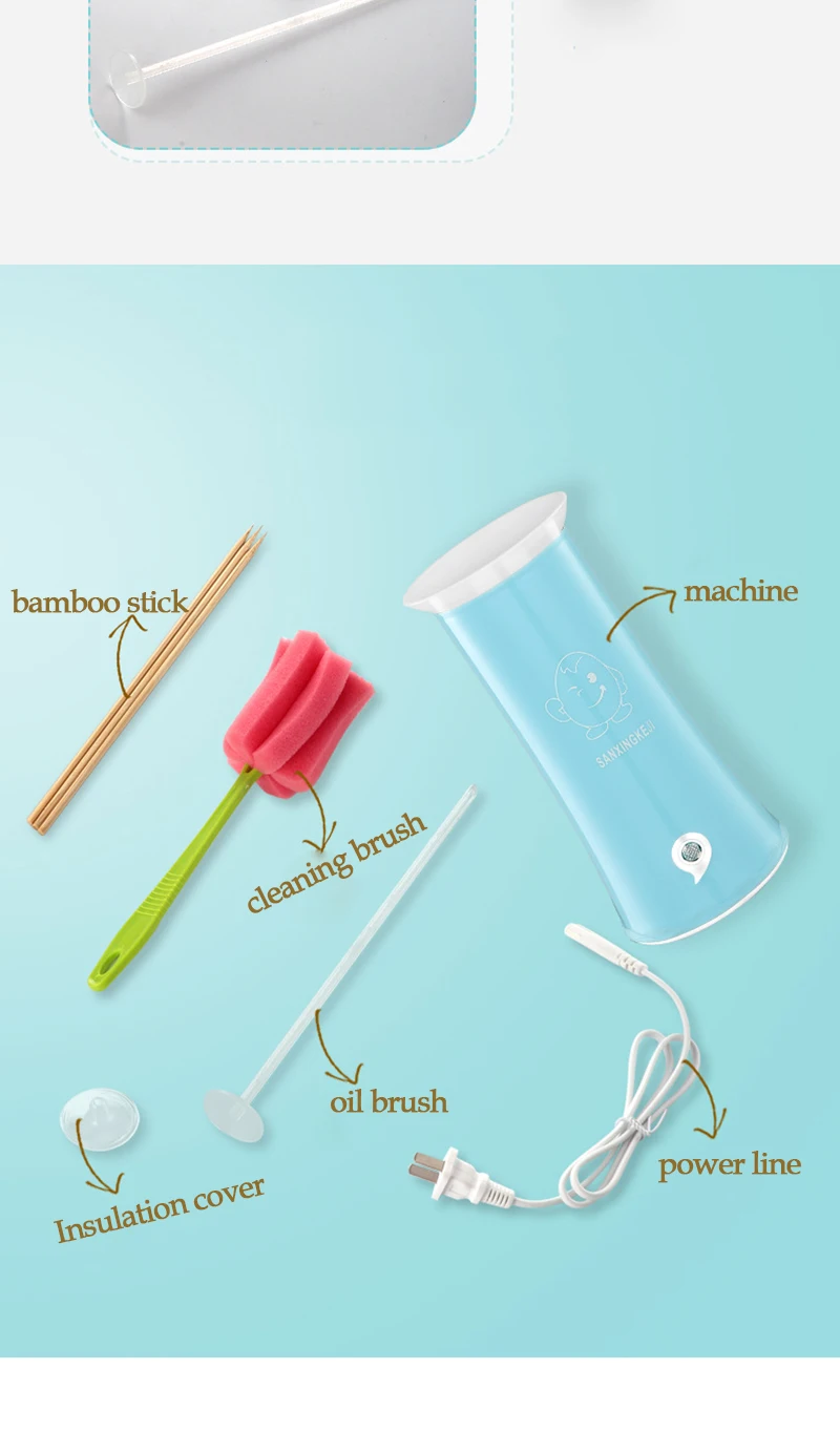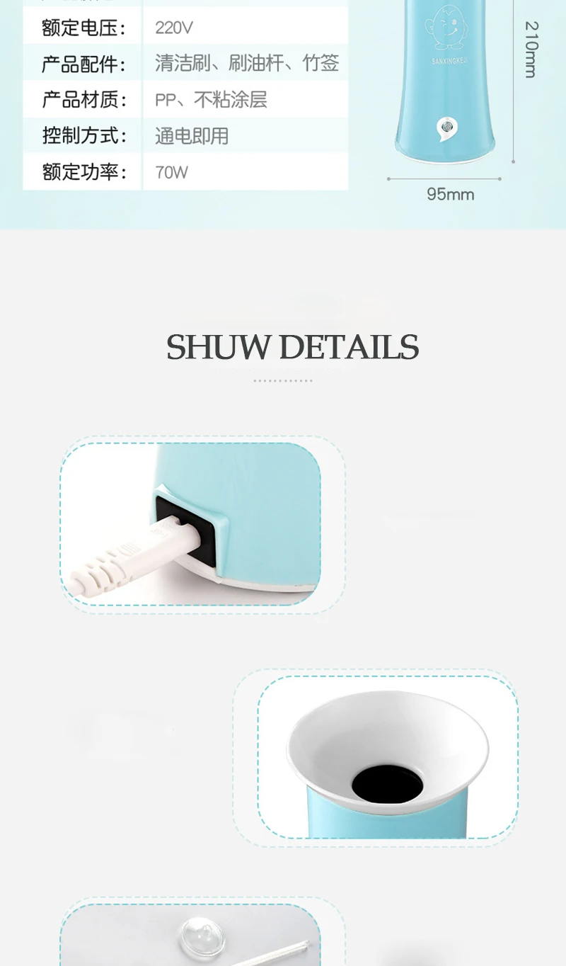 Мощность 50 Гц: 70 Вт Длина кабеля: 80 см ± 2 см размер изделия: 21х10смПосылка: (упаковка с пузырчатой сумкой, без коробки)1 x яичная плита 1 x щетка для очистки 1 x Маслянный столб 5 x бамбуковые палочки 1 x Кабель питания 1 x защитная крышка