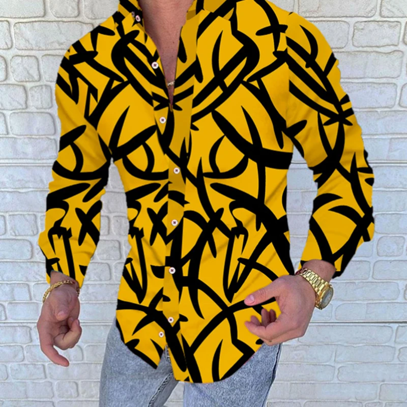 Мужские повседневные рубашки с принтом, роскошные золотые мужские К...
