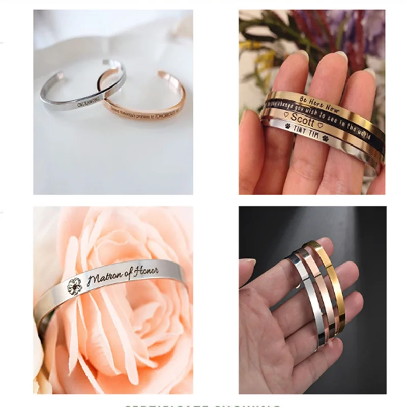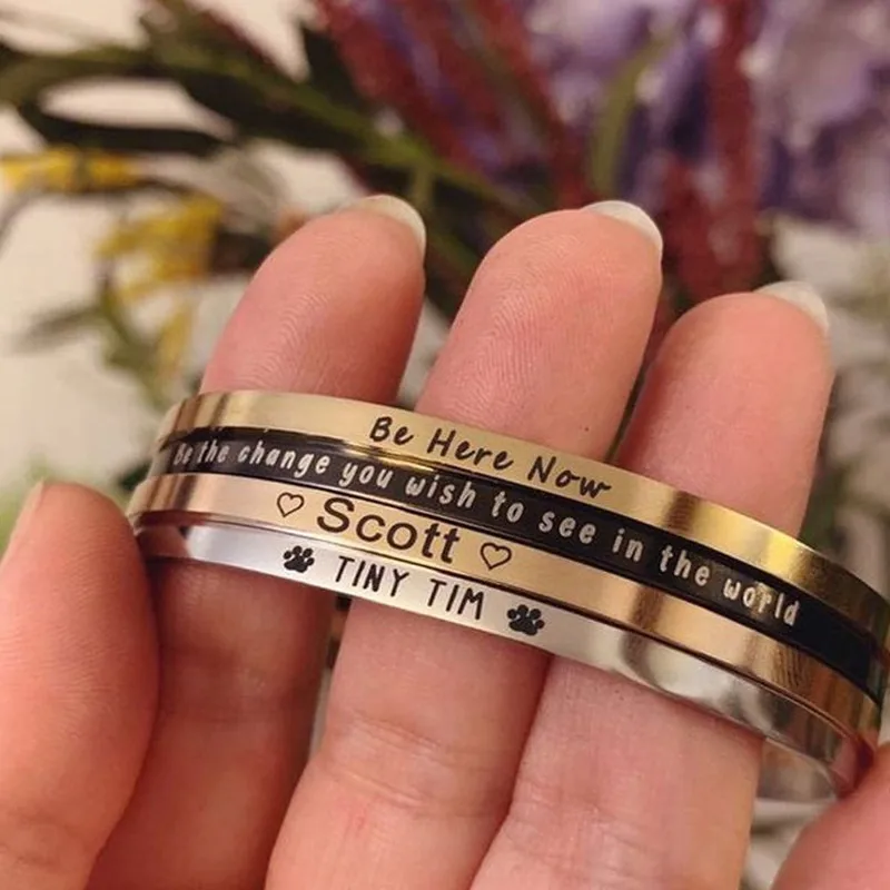 Браслет с гравировкой имени пары для мужчин и женщин, Открытый браслет C-образной формы из нержавеющей стали с буквами под заказ с номером, Модная бижутерия в подарок