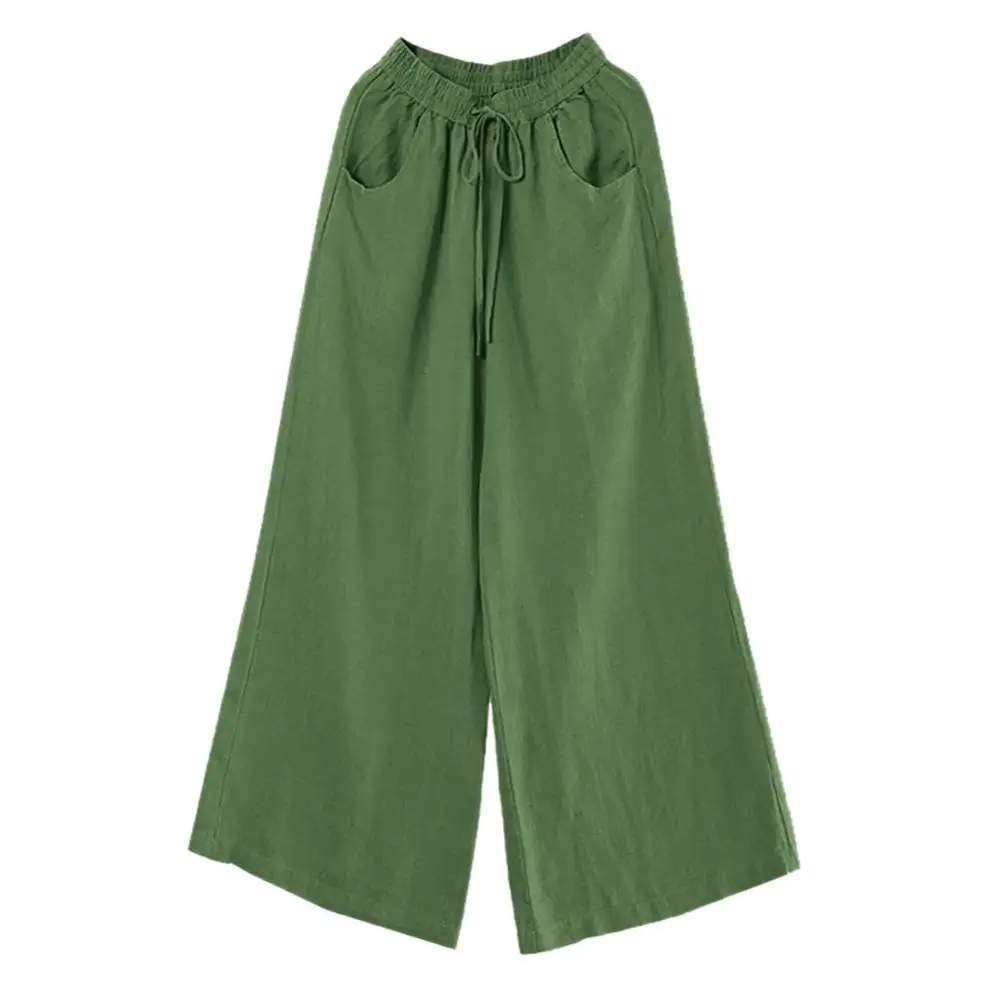 Женские винтажные хлопковые льняные брюки с высокой талией, прямые брюки с карманами, однотонные, Лидер продаж